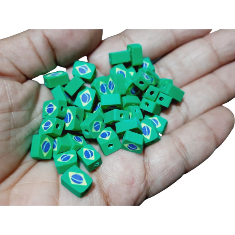 Miçanga entremeio bandeira do Brasil emborrachado 10 unidades