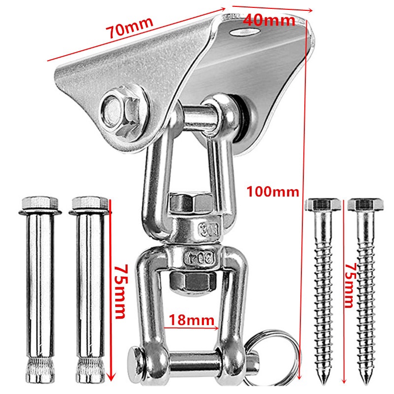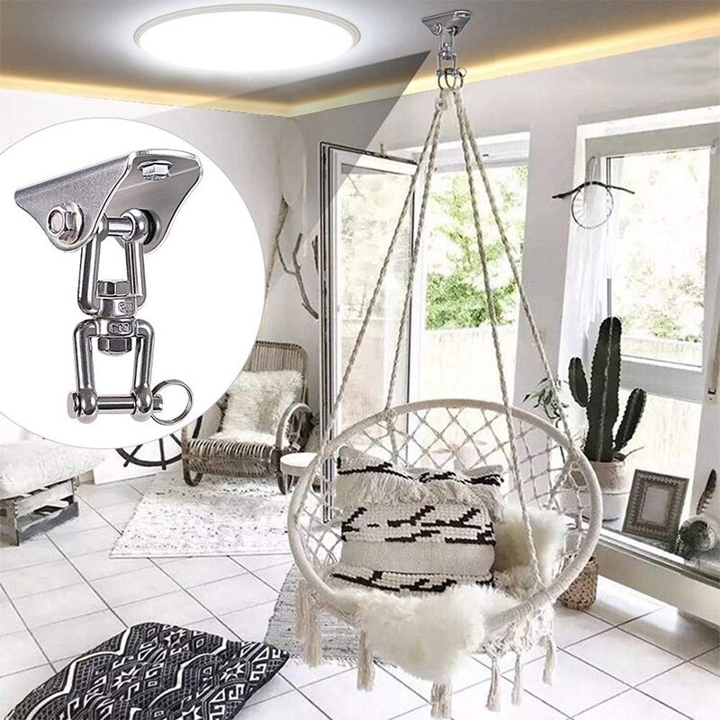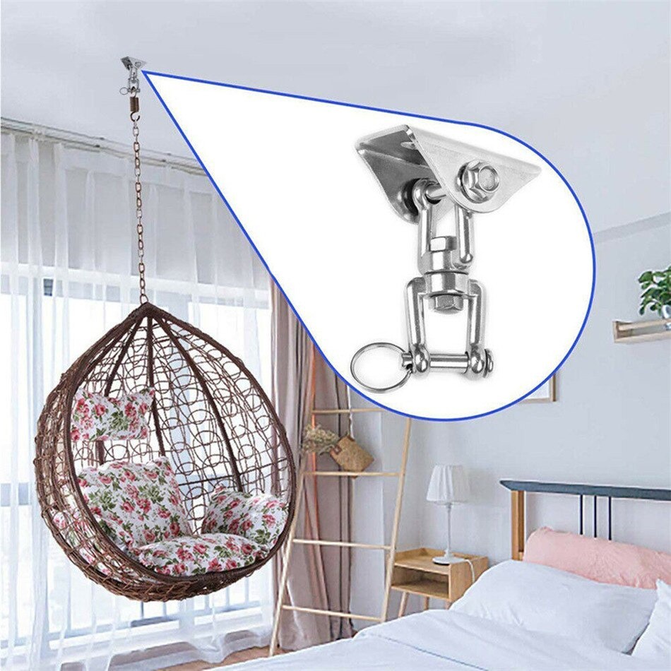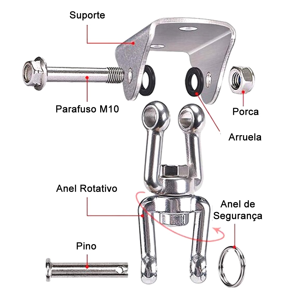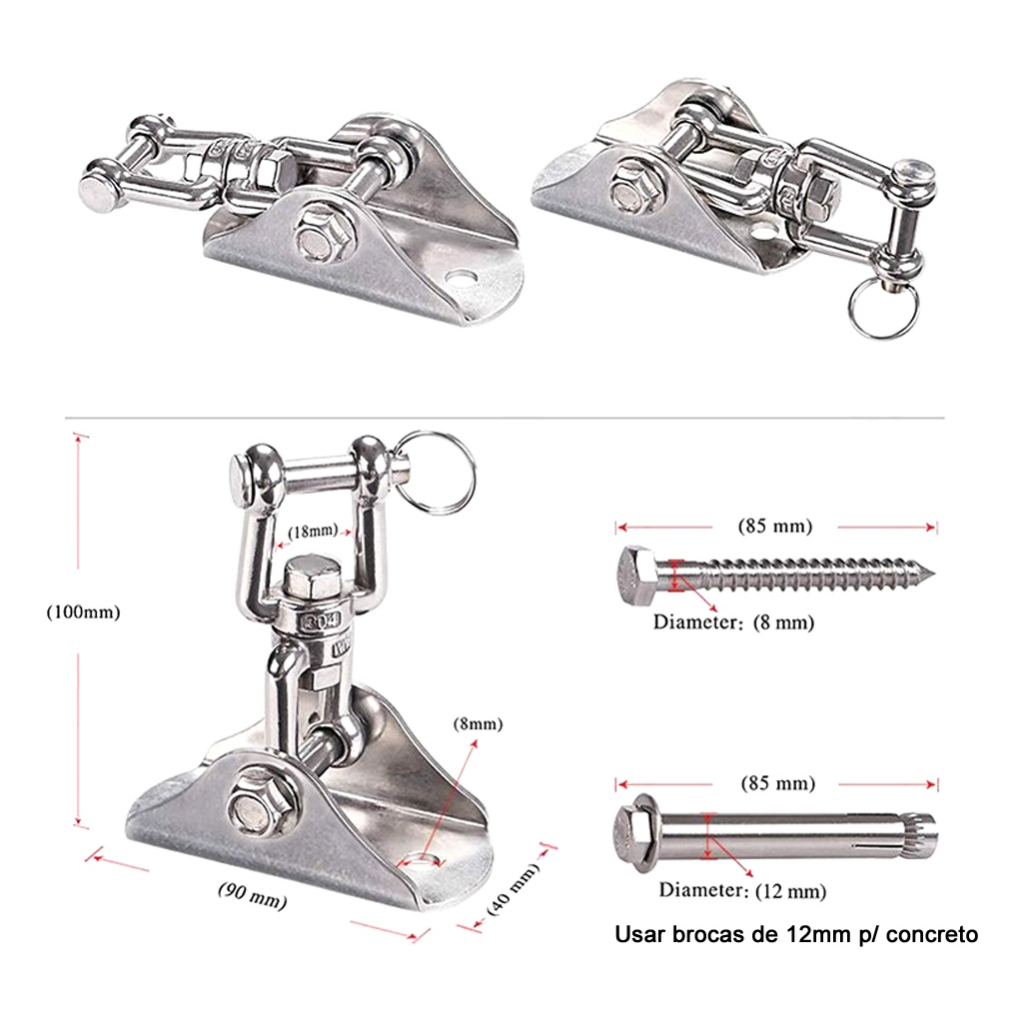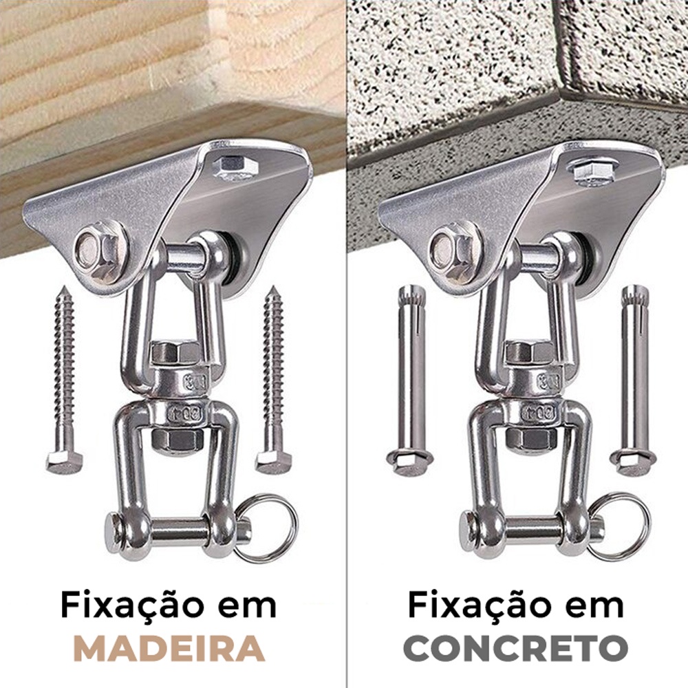 Suporte de Teto Gancho Para Rede e Cadeira Manilha Aço Inox Giratório Capacidade 250Kg