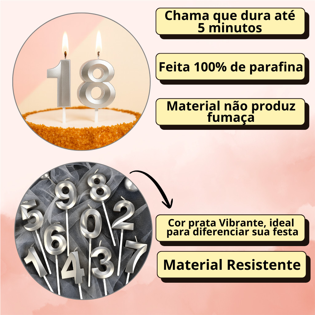 Kit 2 Velas de Aniversário Unidade Design Perolizada Prateada Metalizada Bolo - Silver Festas