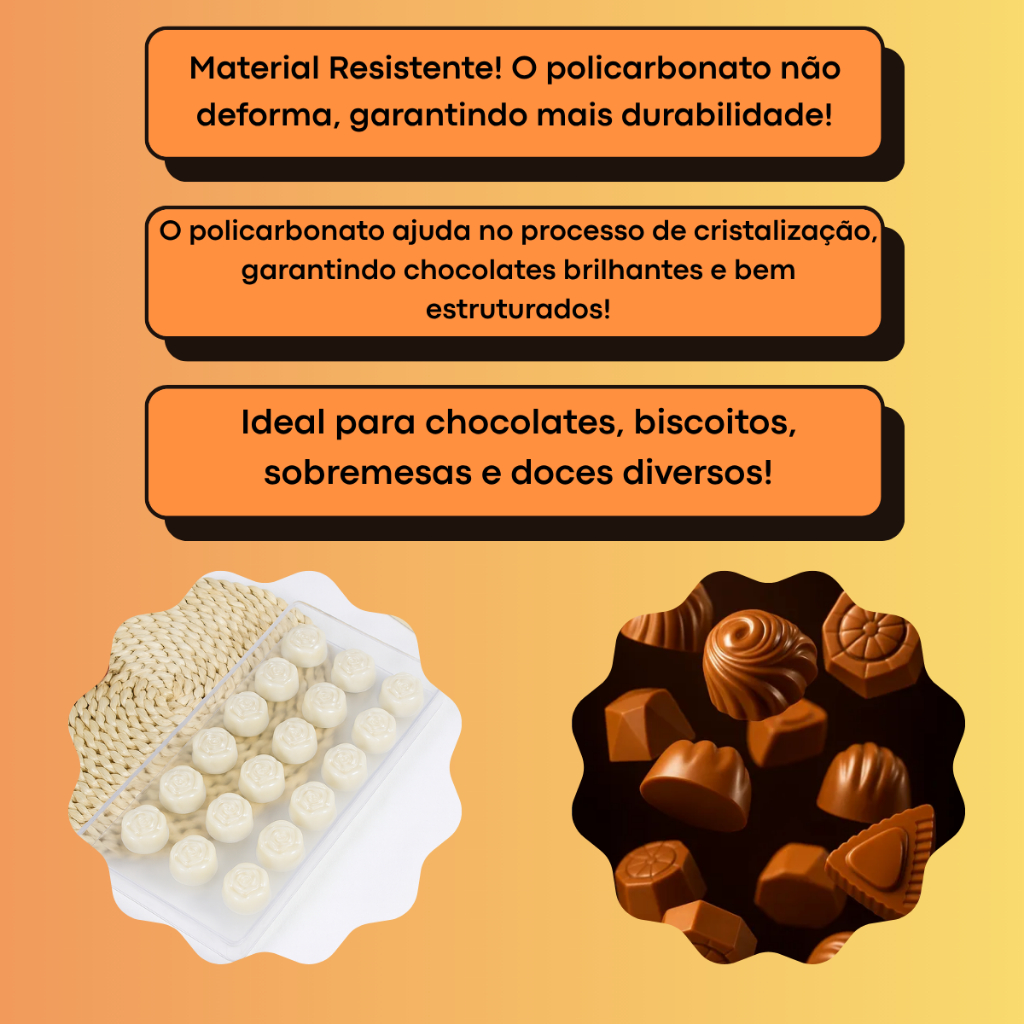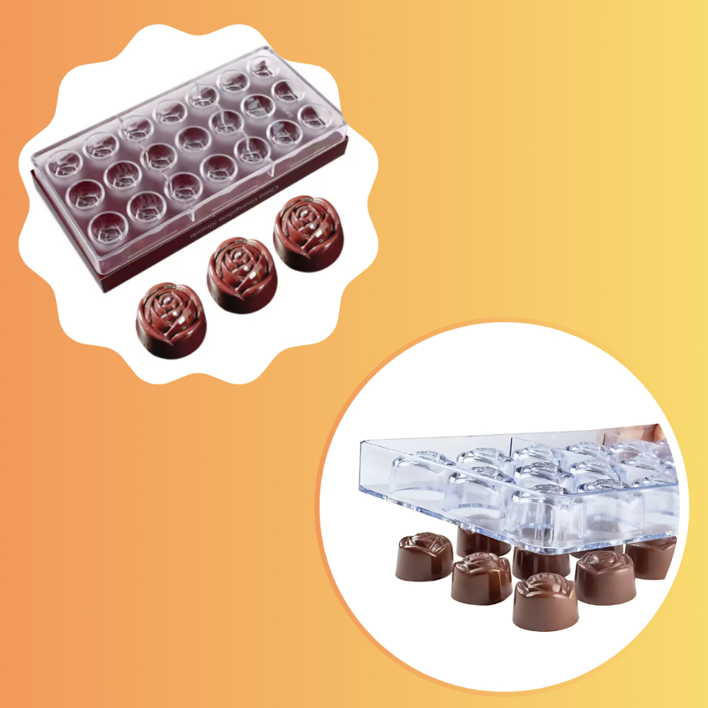 FORMA ROSA POLICARBONATO Chocolate Doce Bombom Profissional Culinária Confeitaria FT 397