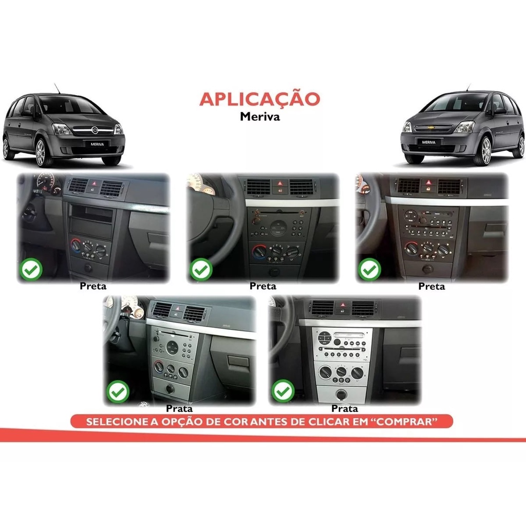 Moldura 2 DIN Chevrolet Meriva 2003 2004 2005 2006 a 2012