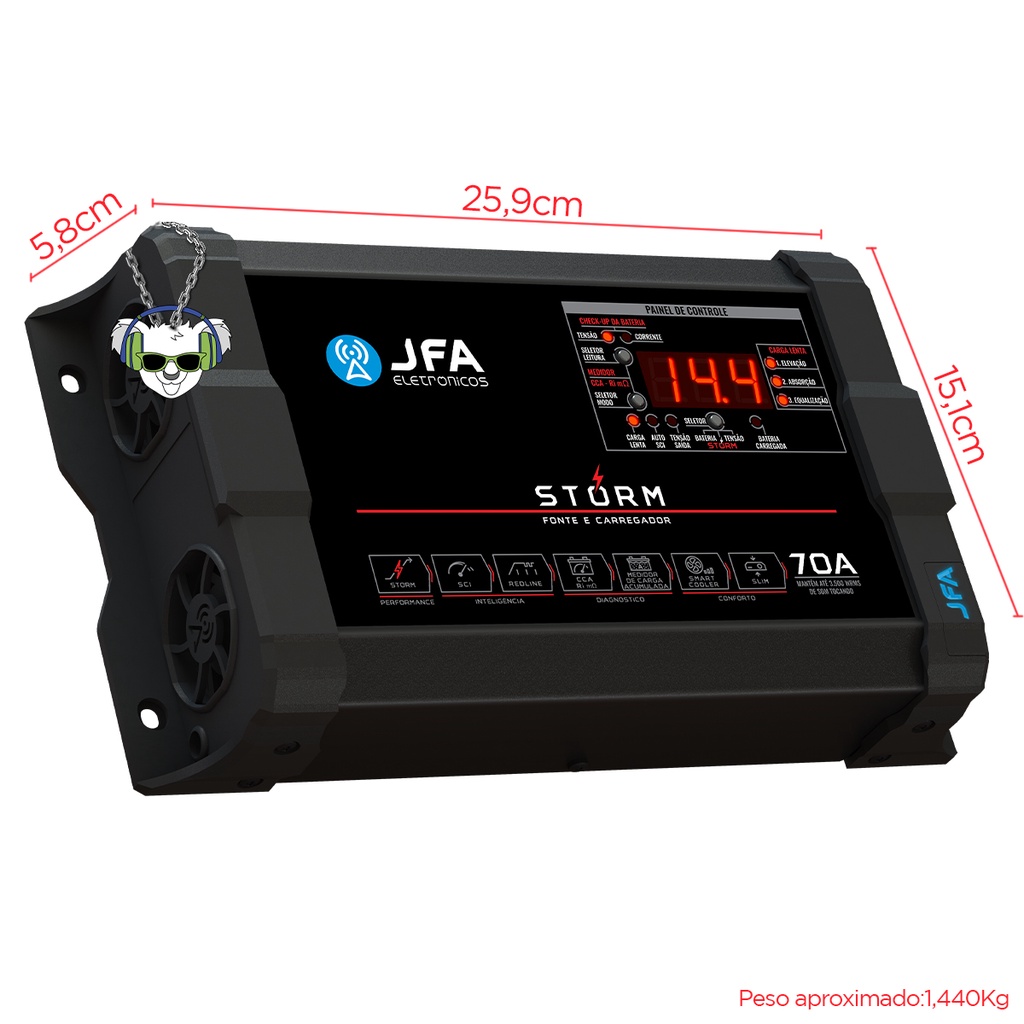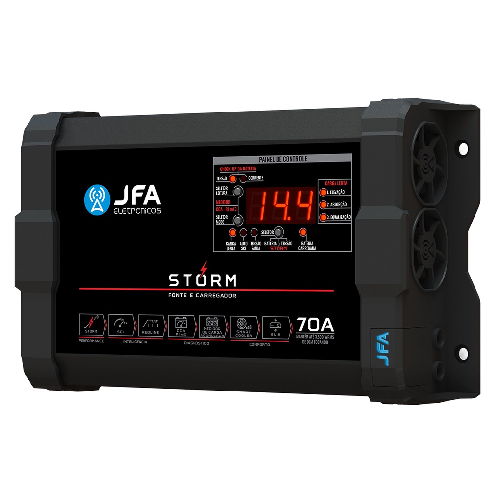 Fonte e Carregador Bateria Bivolt Jfa Storm 70a Digital Cca
