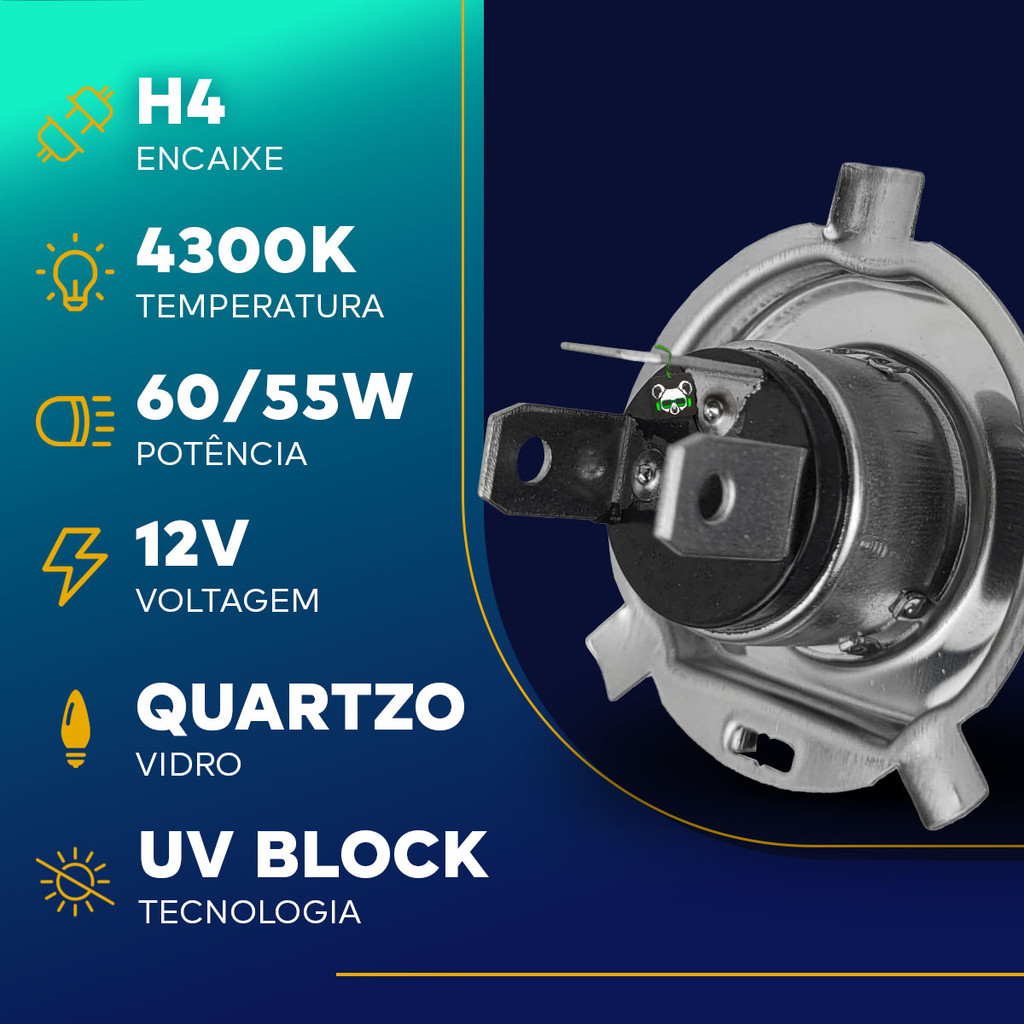 Par Lâmpada Halógena H4 4300k 12V 60/55w Techone