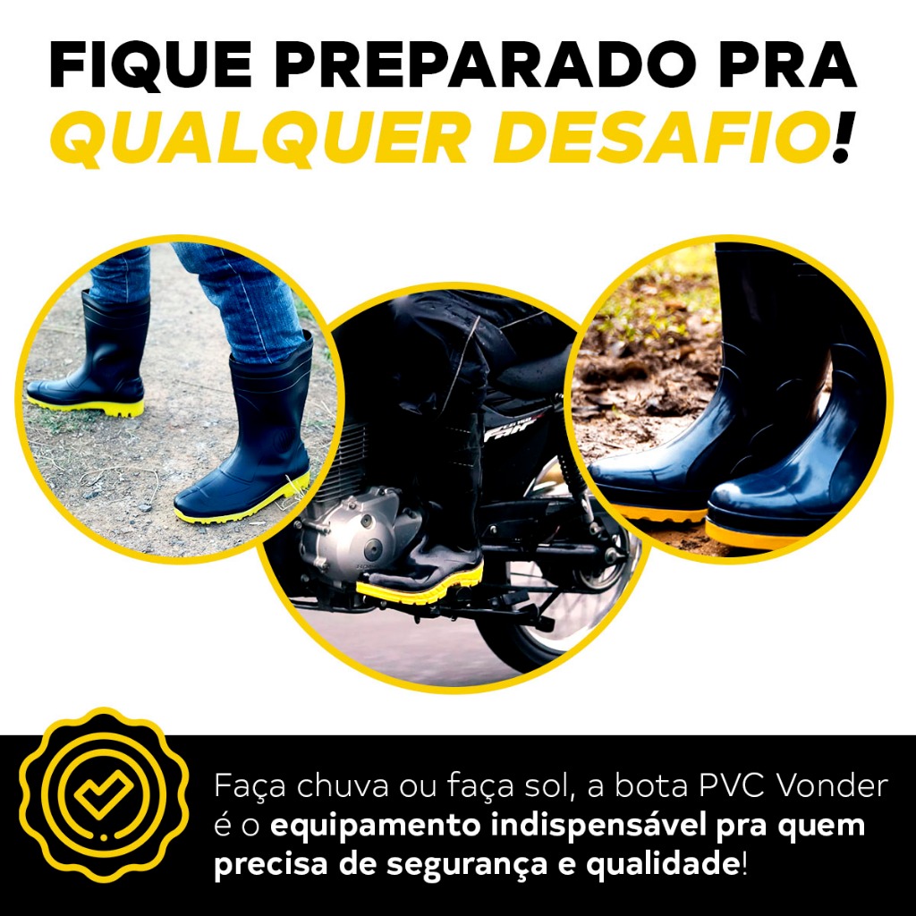 Bota Pvc Impermeável Borracha Forrada Chuva Moto Limpeza Galocha 36 A 45 Vonder