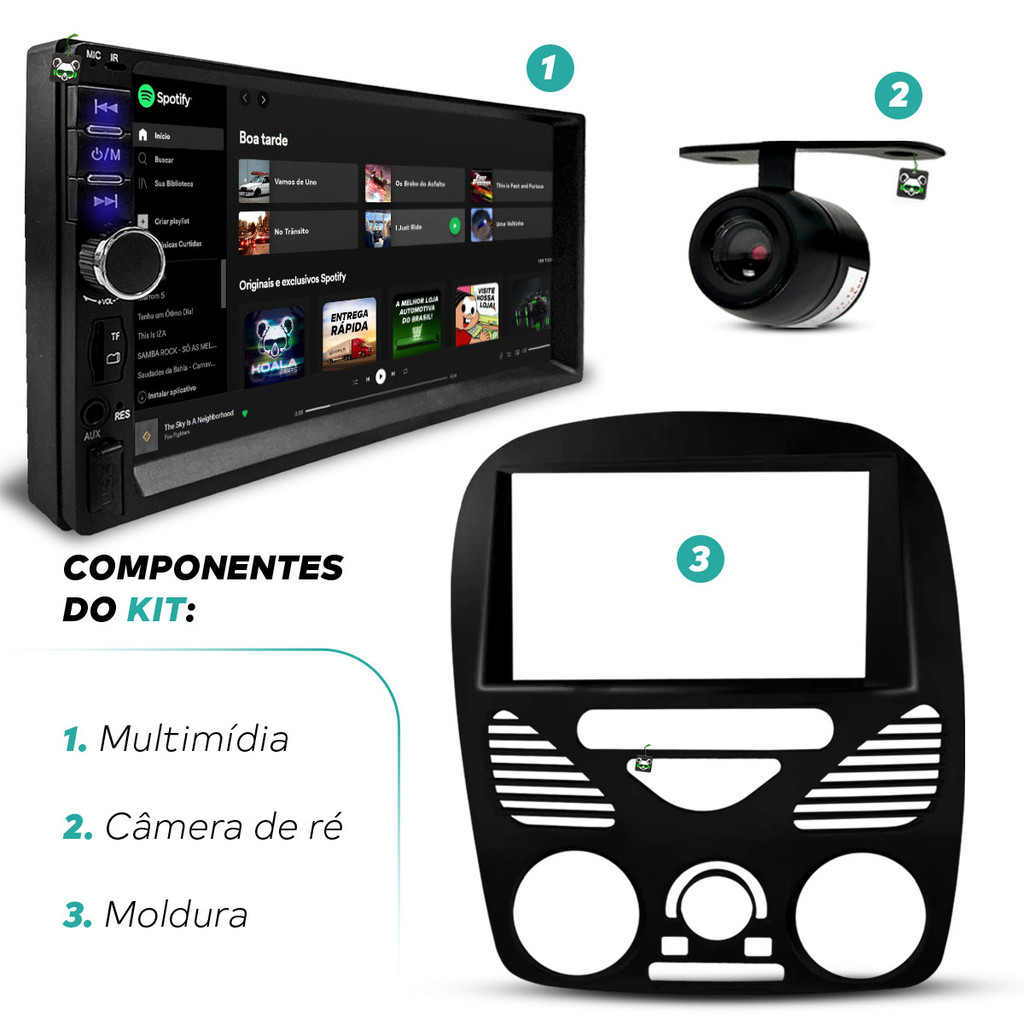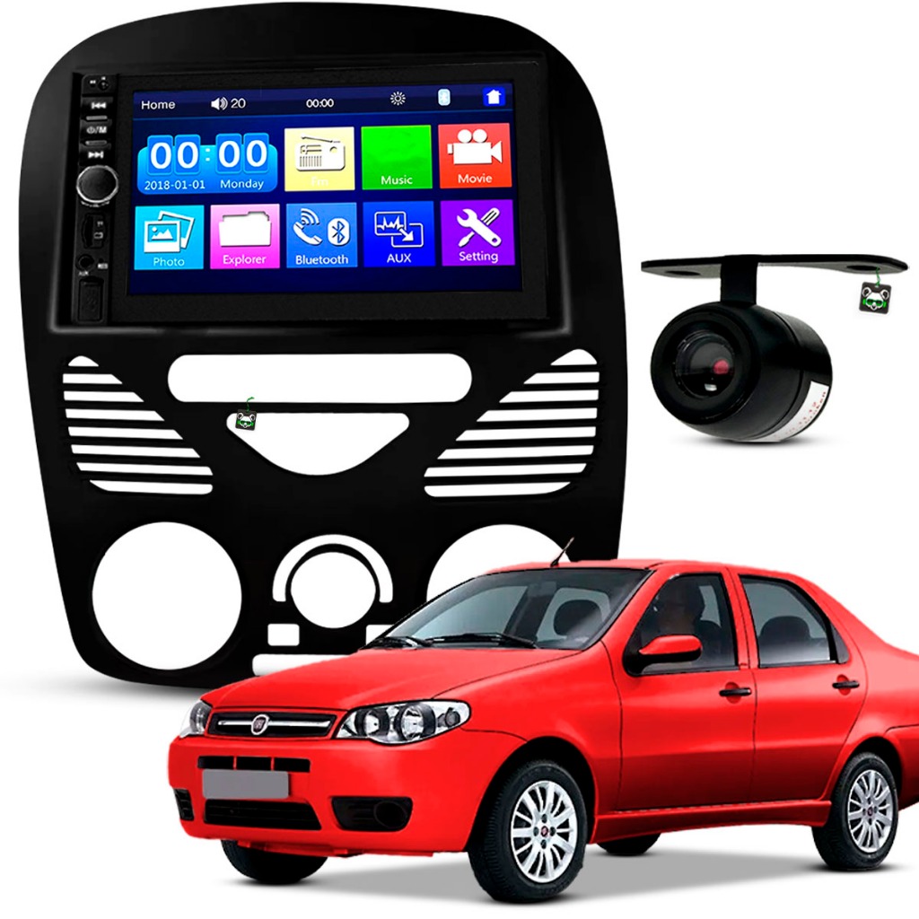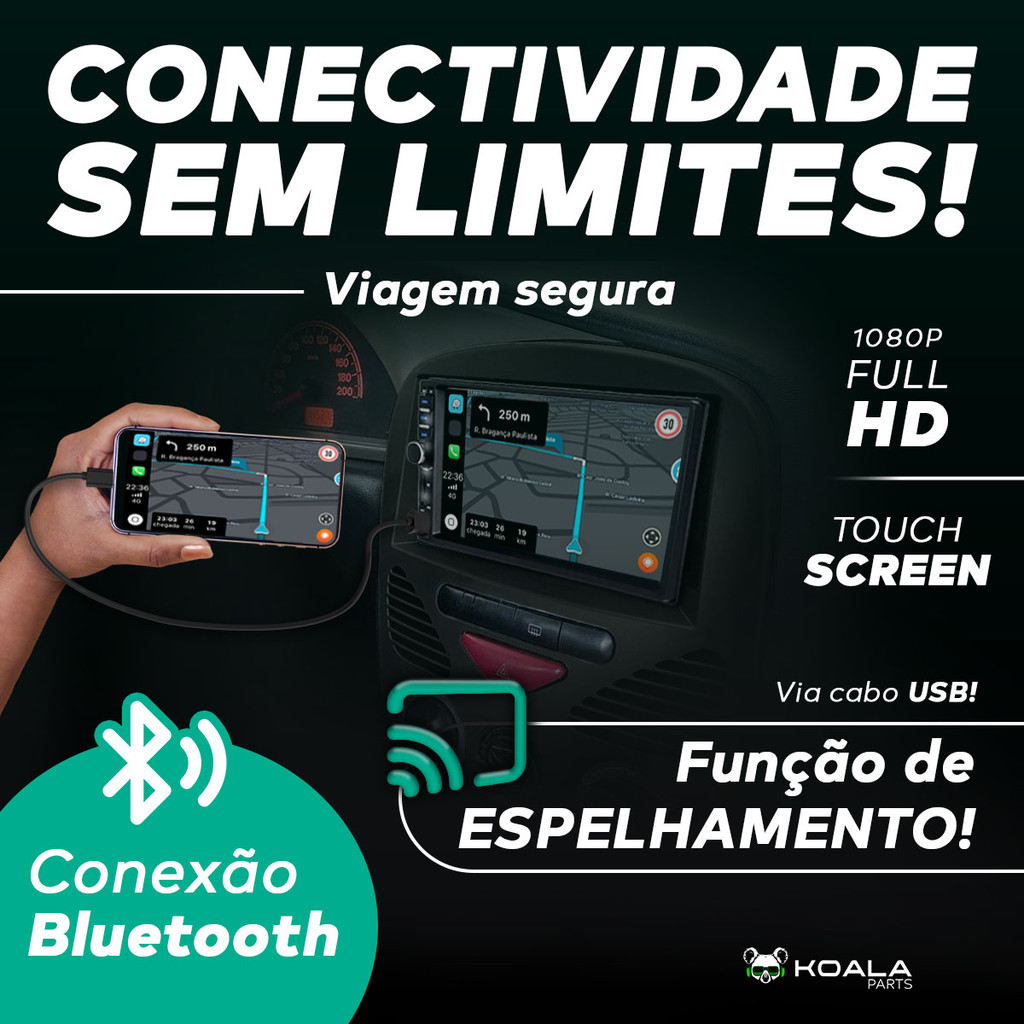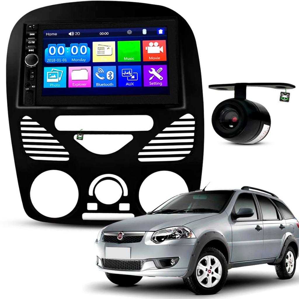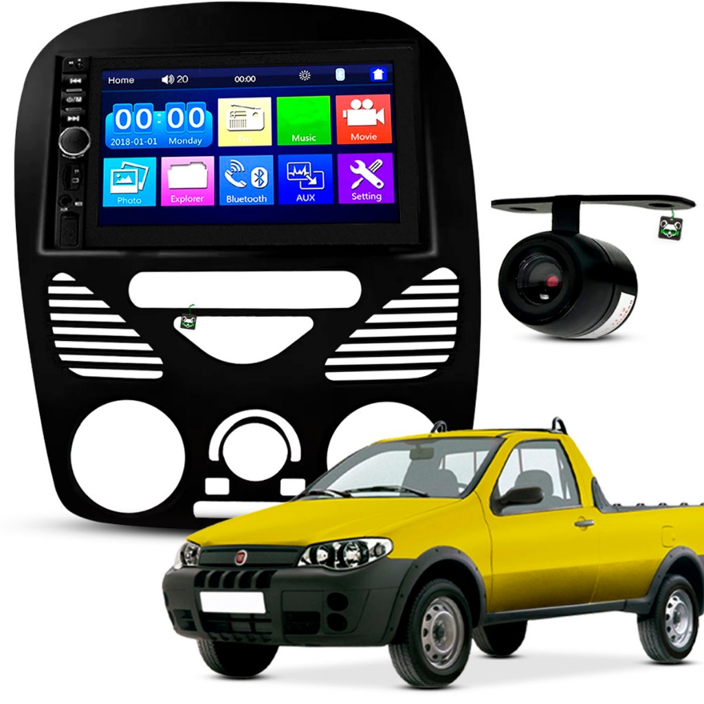 Kit Central Multimidia Espelhamento Android Ios Strada/Palio/Siena/Weekend 2002 A 10 11 12 13 2014