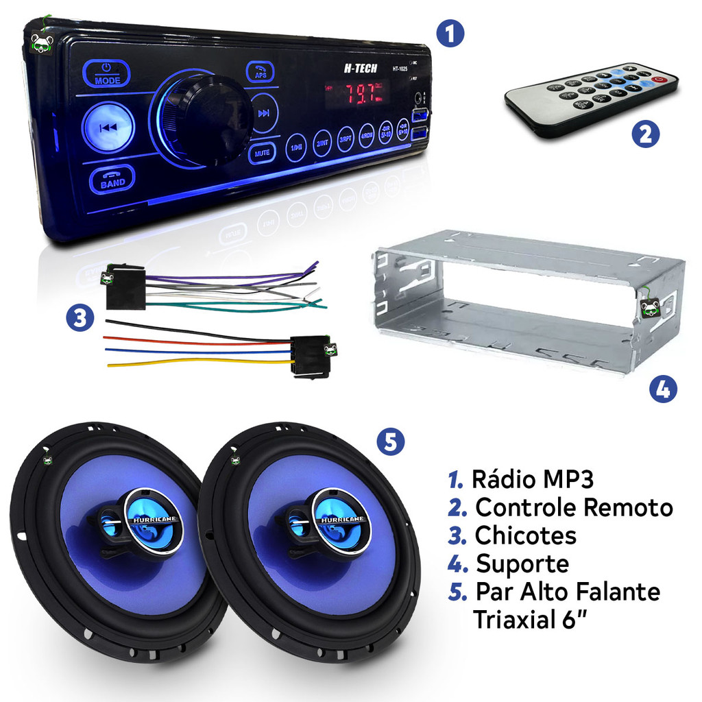 Kit Rádio Mp3 Som Automotivo + Par Alto Falante Triaxial 6 Polegadas 100w
