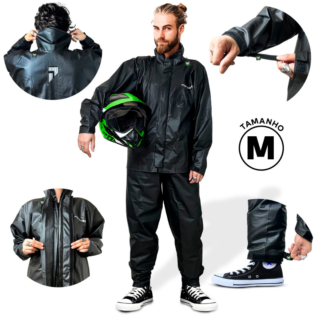 Kit Capa Chuva Motoqueiro Impermeável Pvc Reforçada + Bota