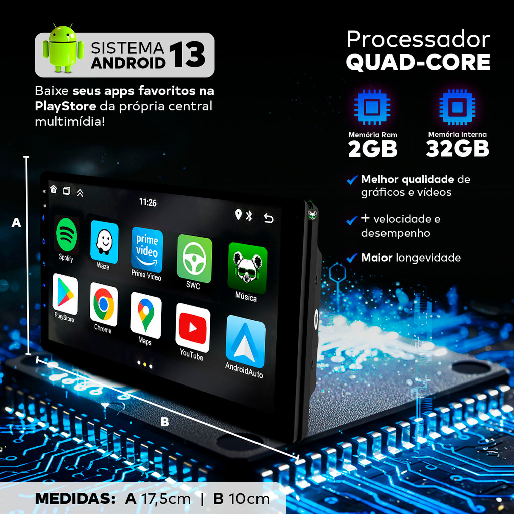 Kit Multimídia Android Carplay 7 Pol Celta G2 2006 2008 2009 2010 2011