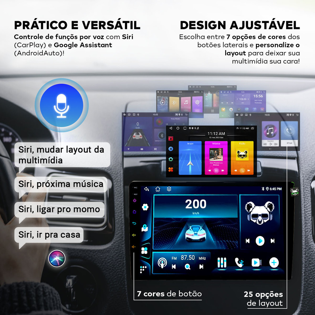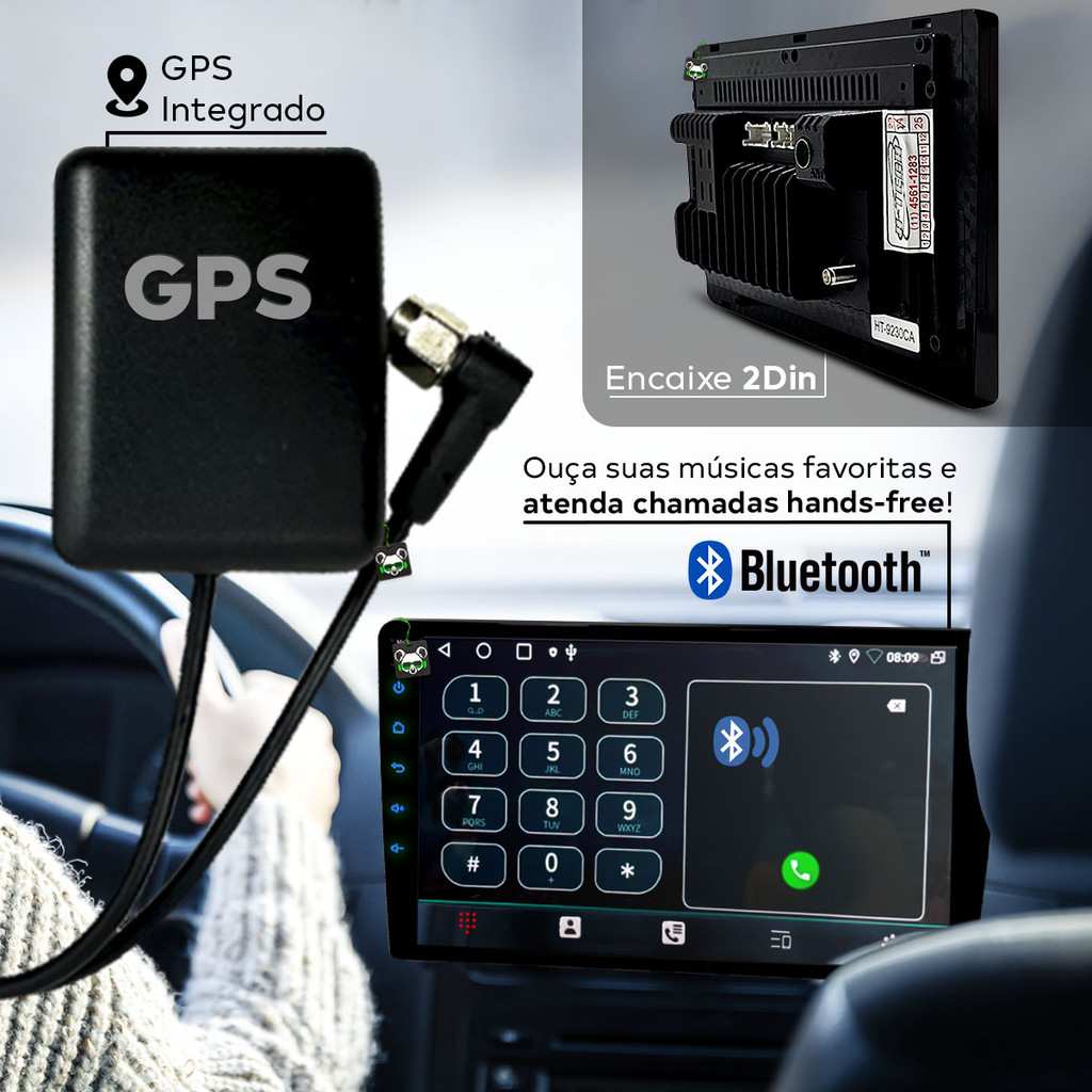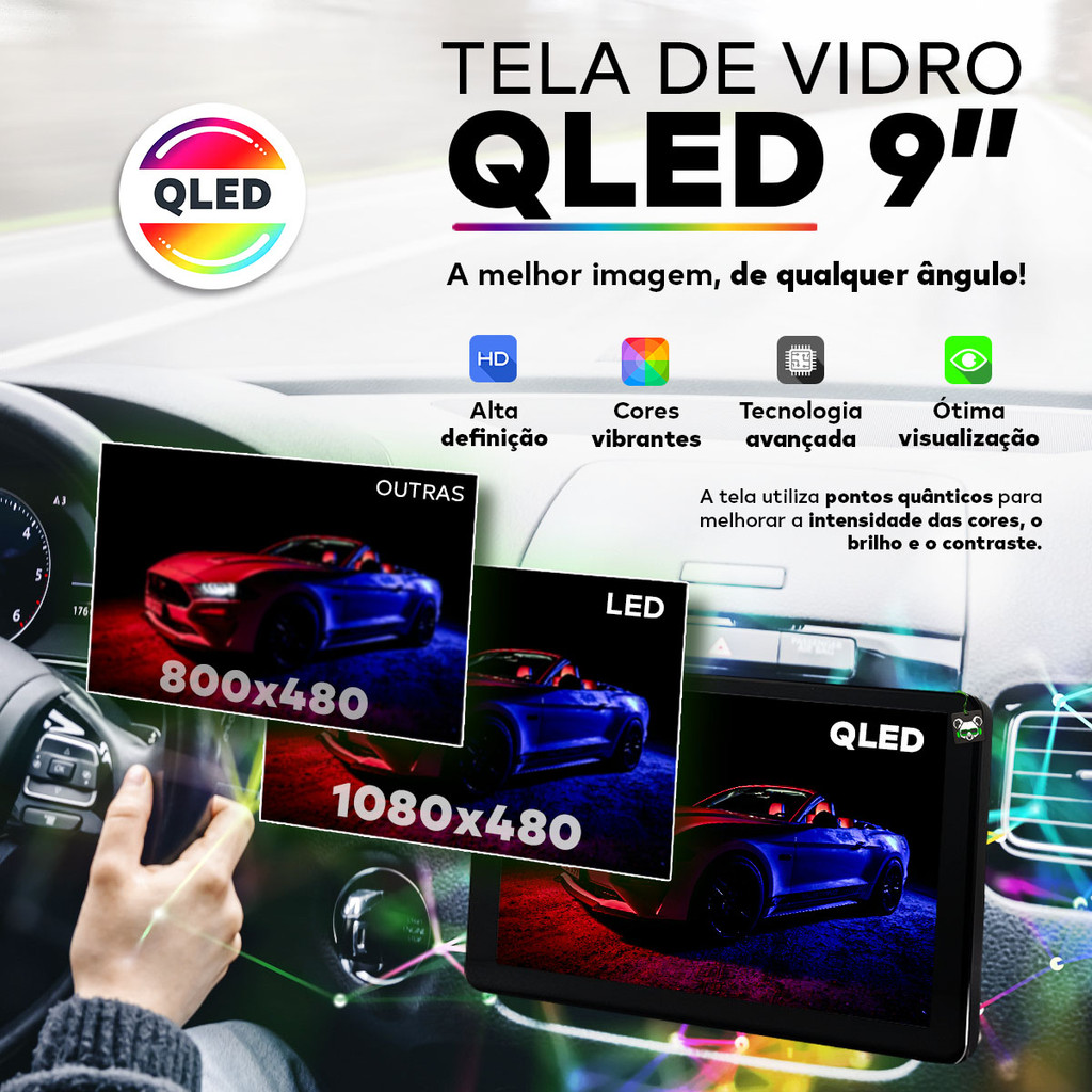 Multimídia Android 9 Pol Quadcore 2GB QLED 2 Din C/ Android Auto Carplay Sem Fio