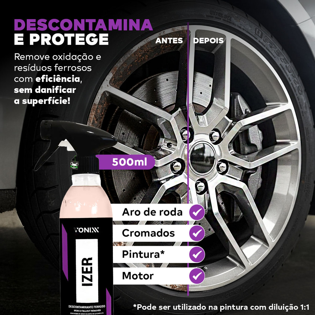 Limpa Rodas Descontaminante Ferroso Aço Metal Izer 500ml Vonixx