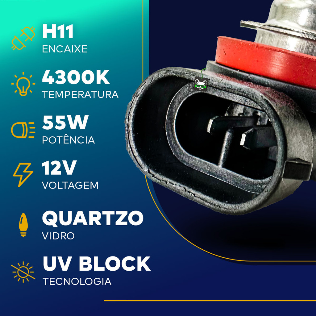 Par Lâmpada Halógena Encaixe H11 4300k 12v 55w Techone