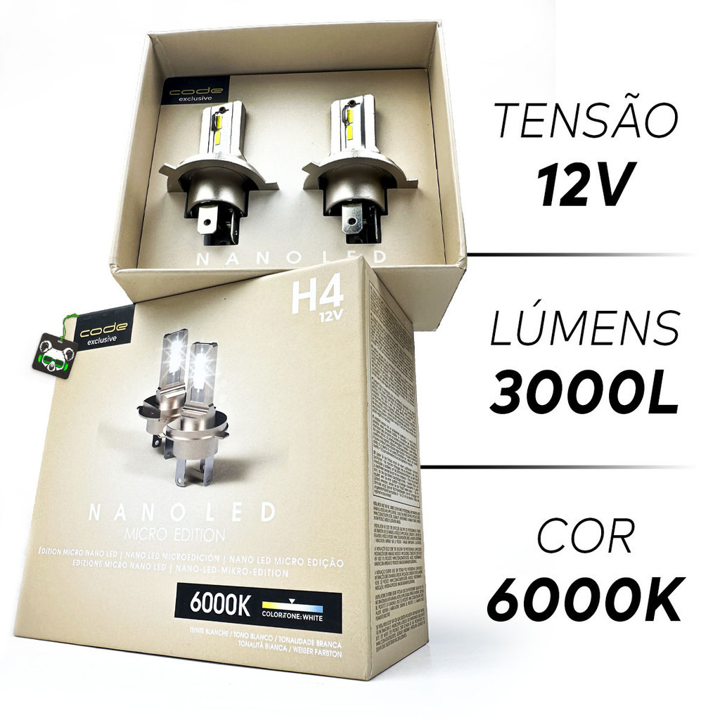 Par Lâmpada Nano Led Micro Edition Code 3000lm 6000k H4