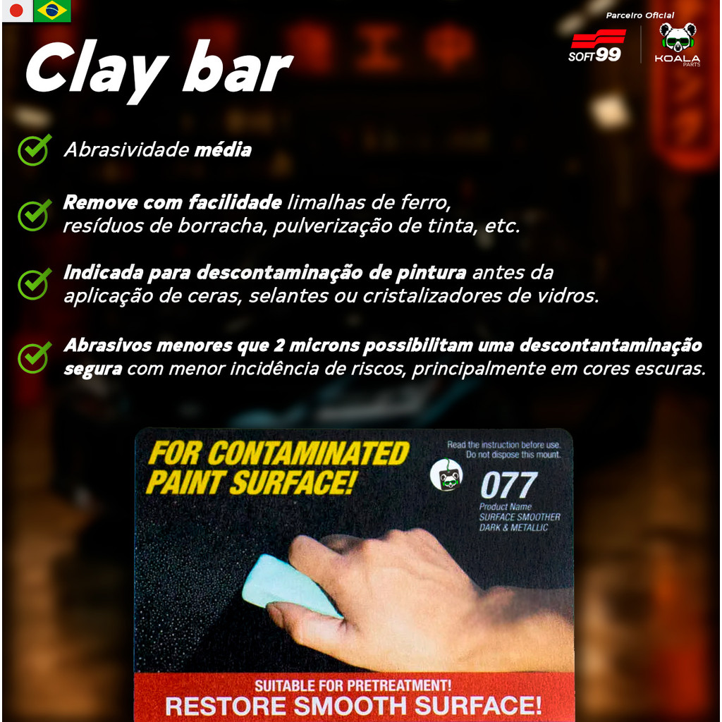 Barra Descontaminante de Pinturas Escuras Clay Bar Dark & Metallic 150g Soft99