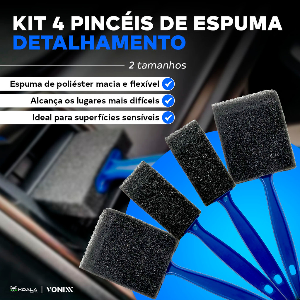 Kit 4 Pincéis Espuma Macio Detalhamento Grade Ar Vonixx