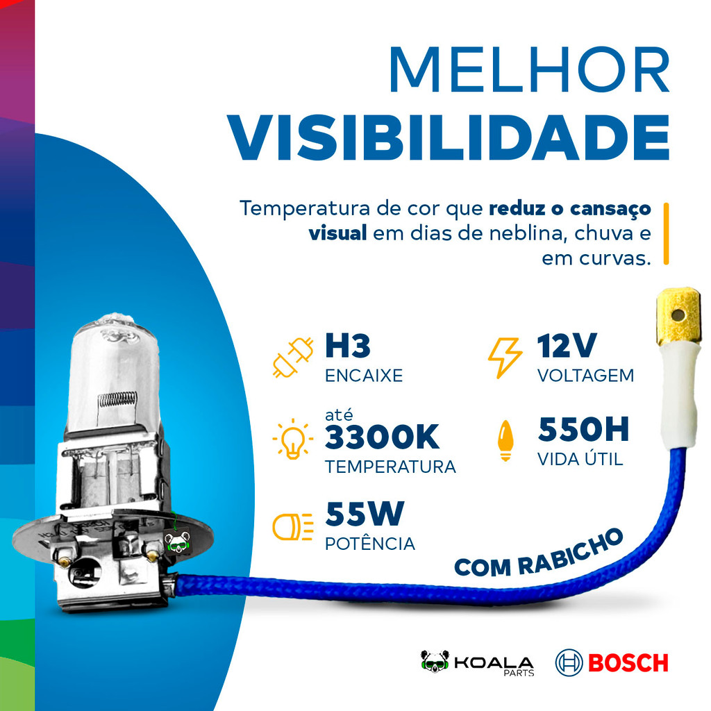 Par Lâmpada Automotiva Halógena H3 Pure Light 12V 55W Bosch