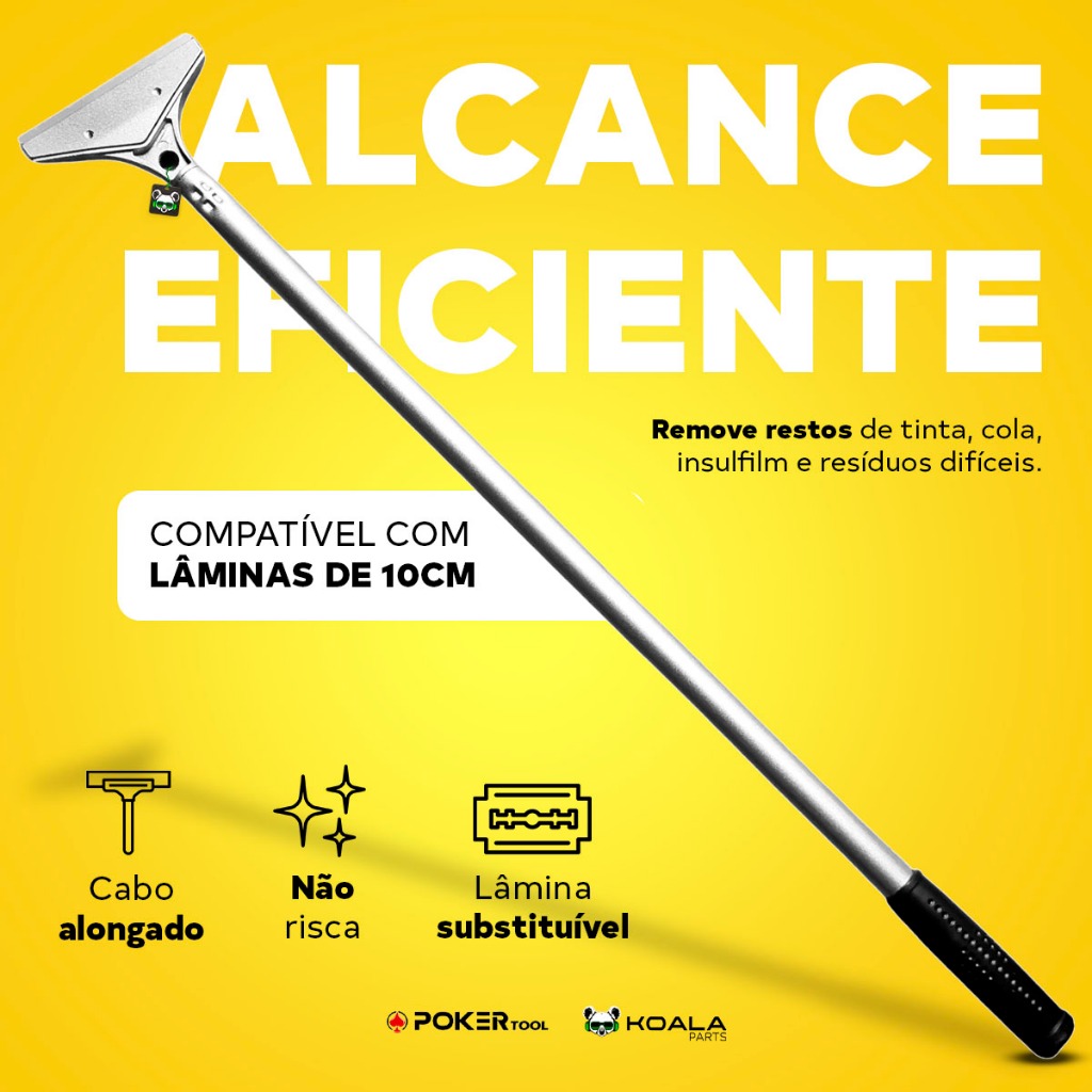 Raspador Multiuso de Metal C/ Cabo Alongado Vidro Insulfilm Cola Tinta Poker Tool
