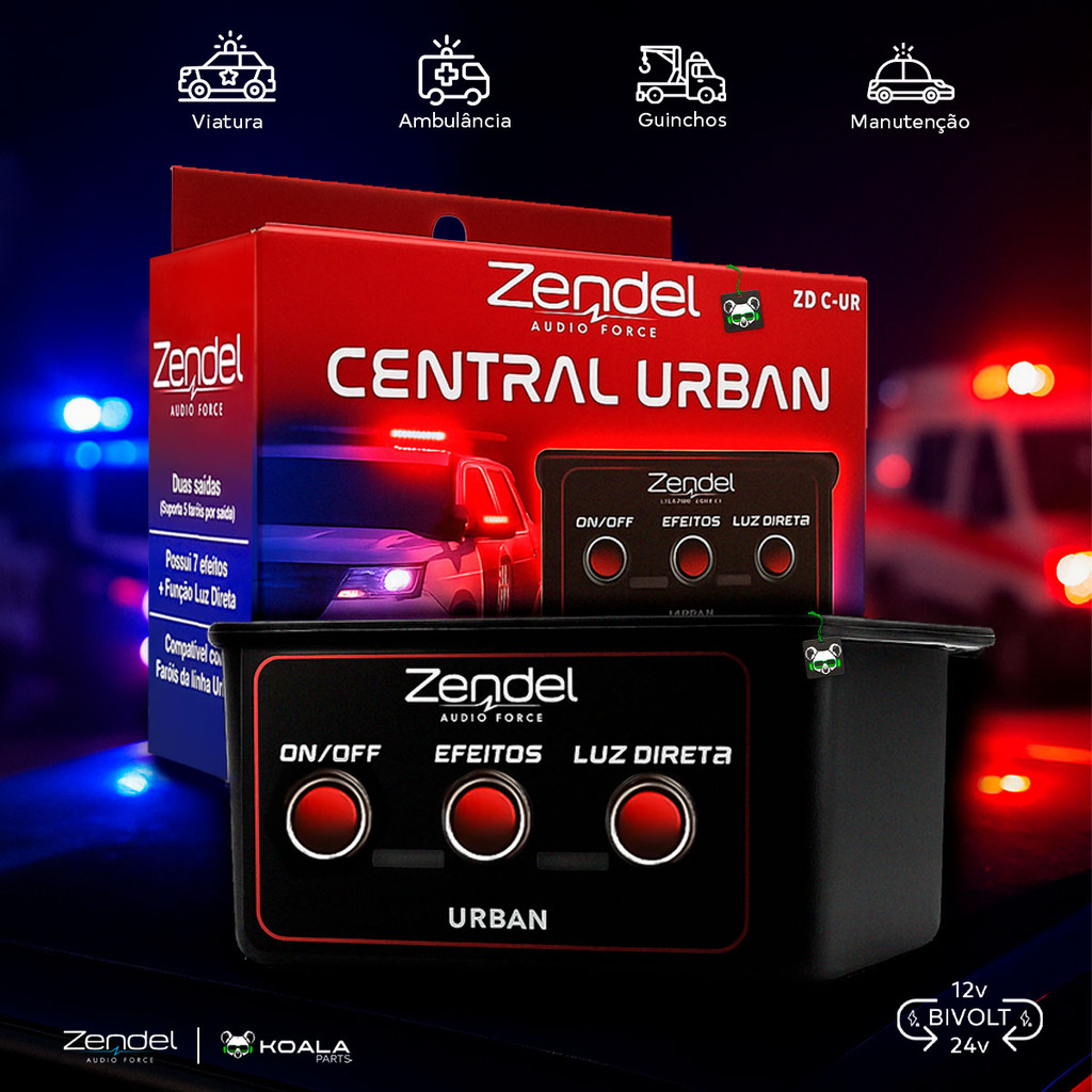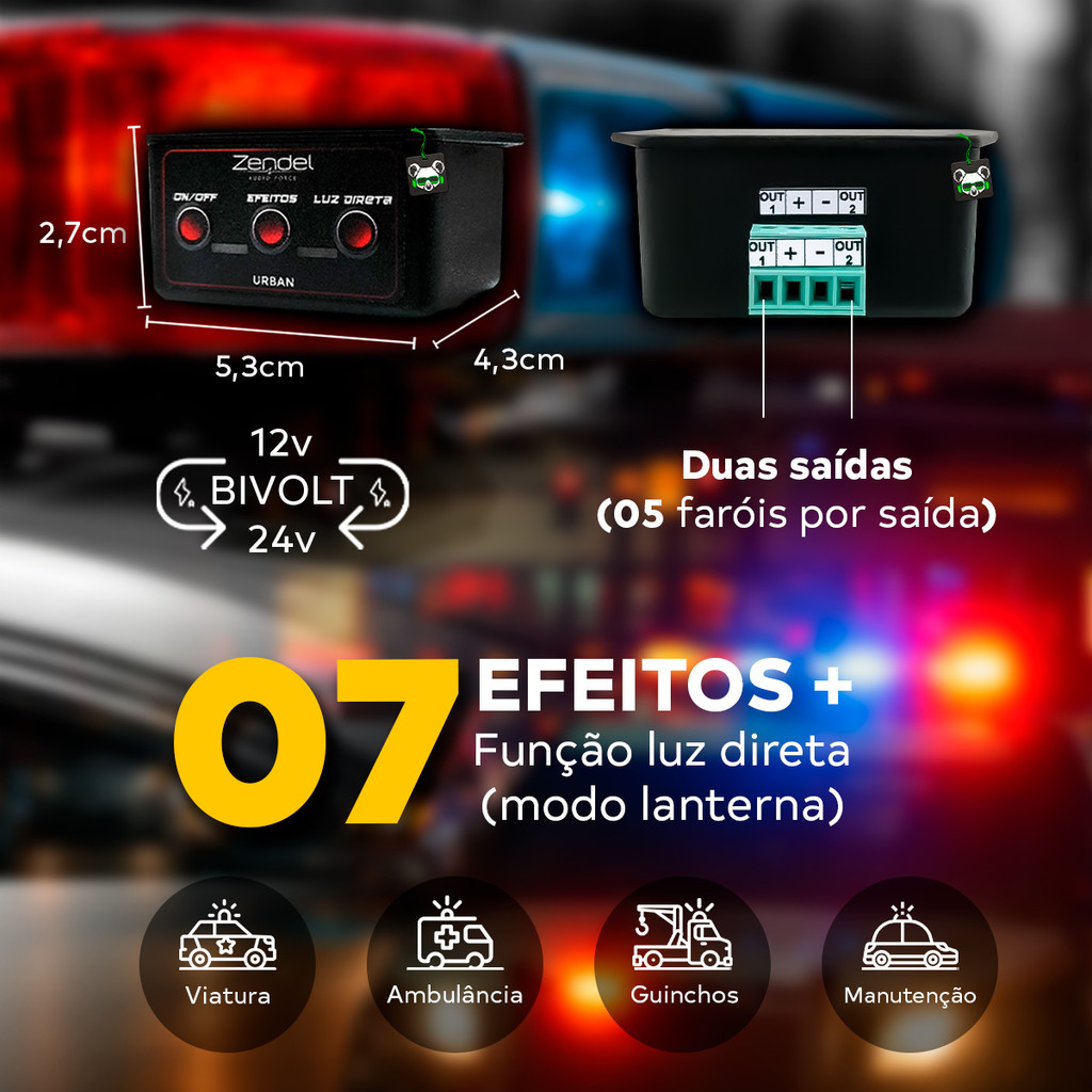 Central Strobo Urban 7 Efeitos 2 Saída Ambulancia Policia Giroflex Guincho 12/24v Zendel