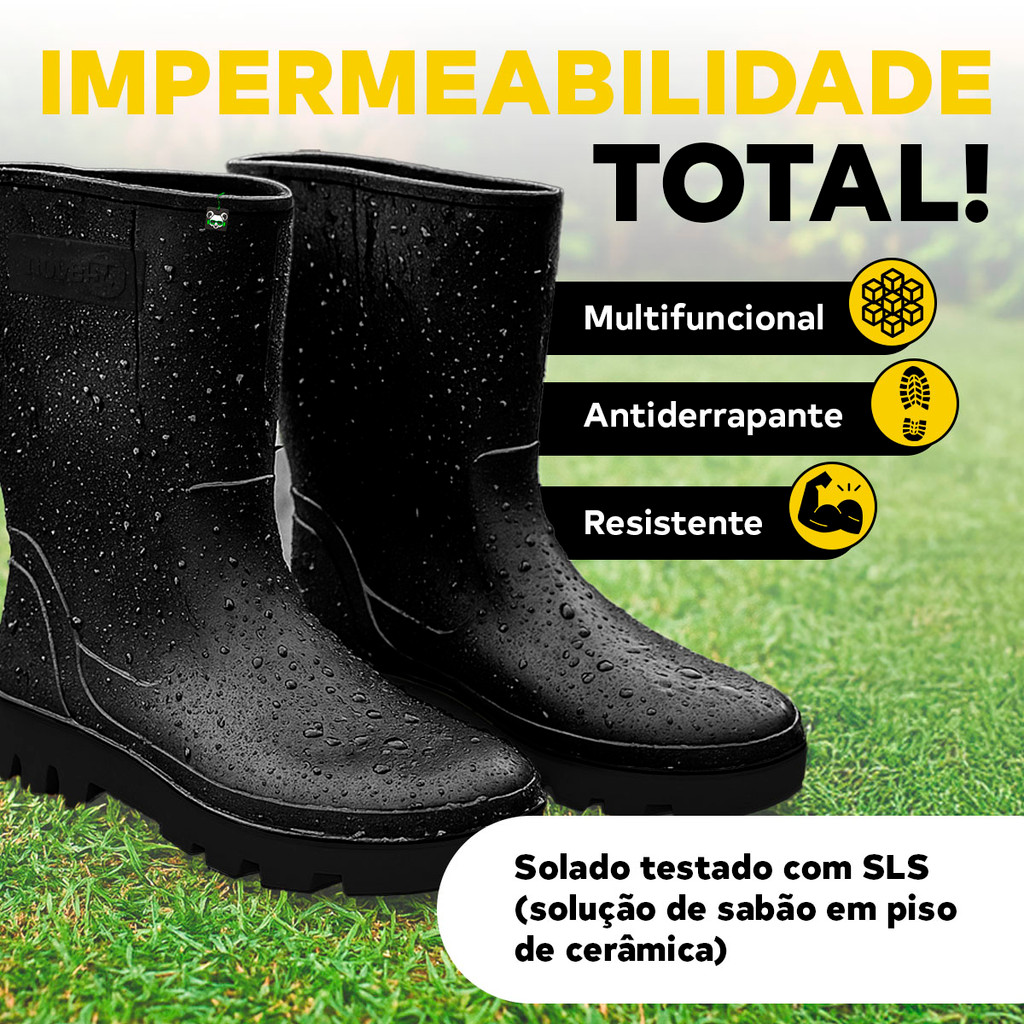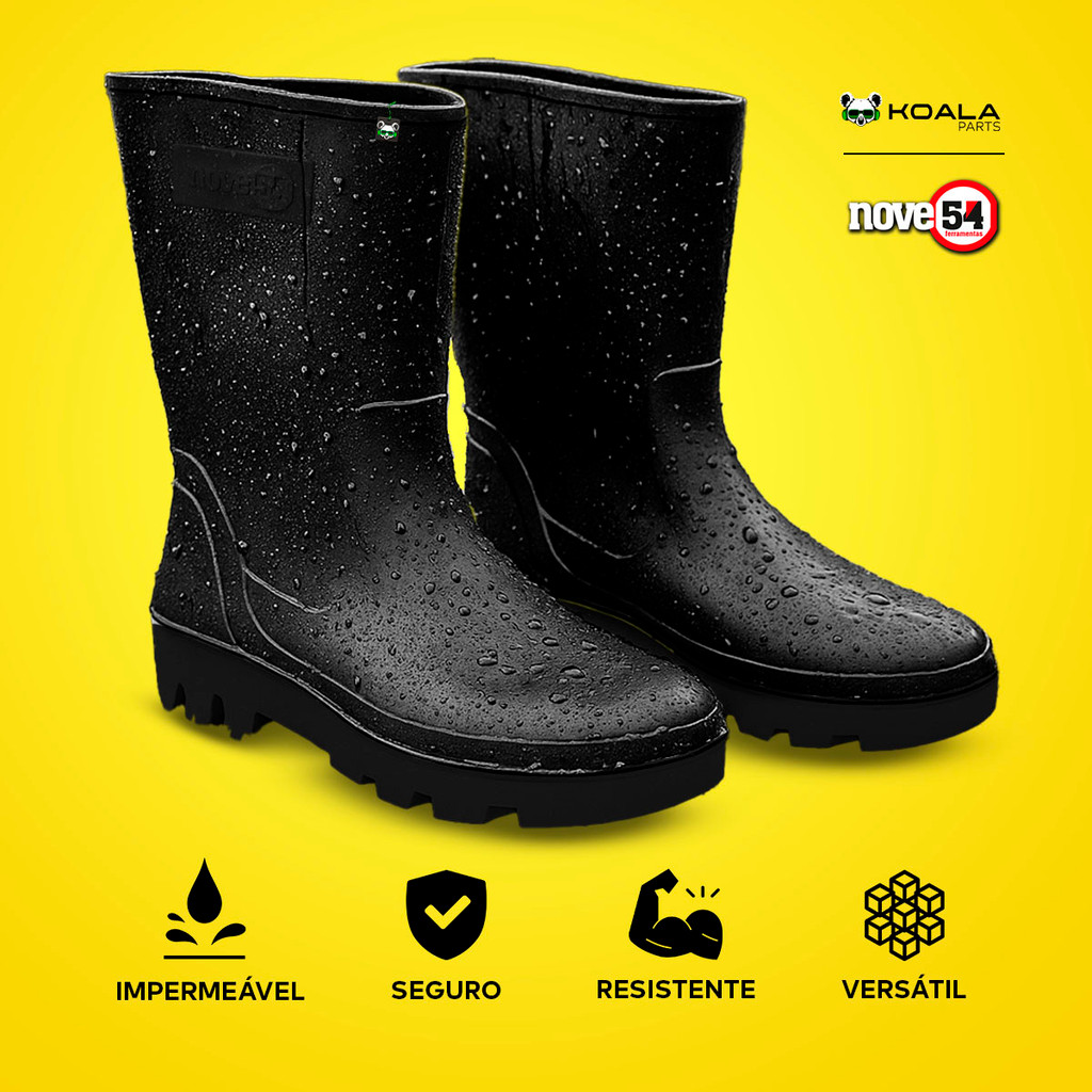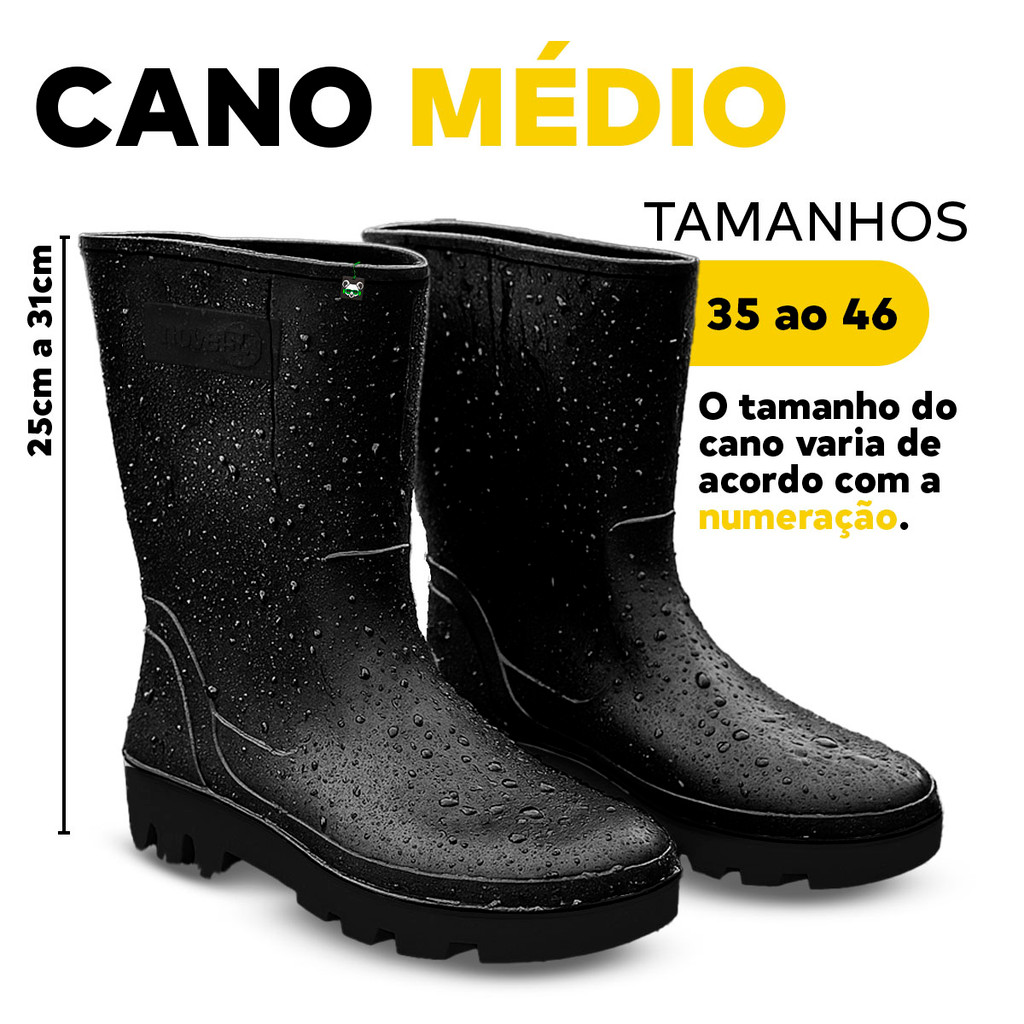 Bota Pvc Impermeável Borracha S/ Forro Chuva Moto Limpeza Galocha Preta Nove54