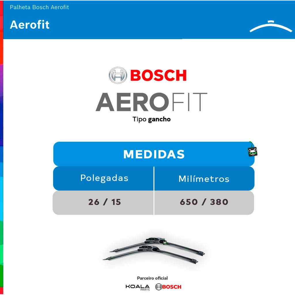 Par Palheta Limpador Parabrisa Dianteira Aerofit Bosch Honda Hrv 2015 2016 2017 2018 Braço Gancho