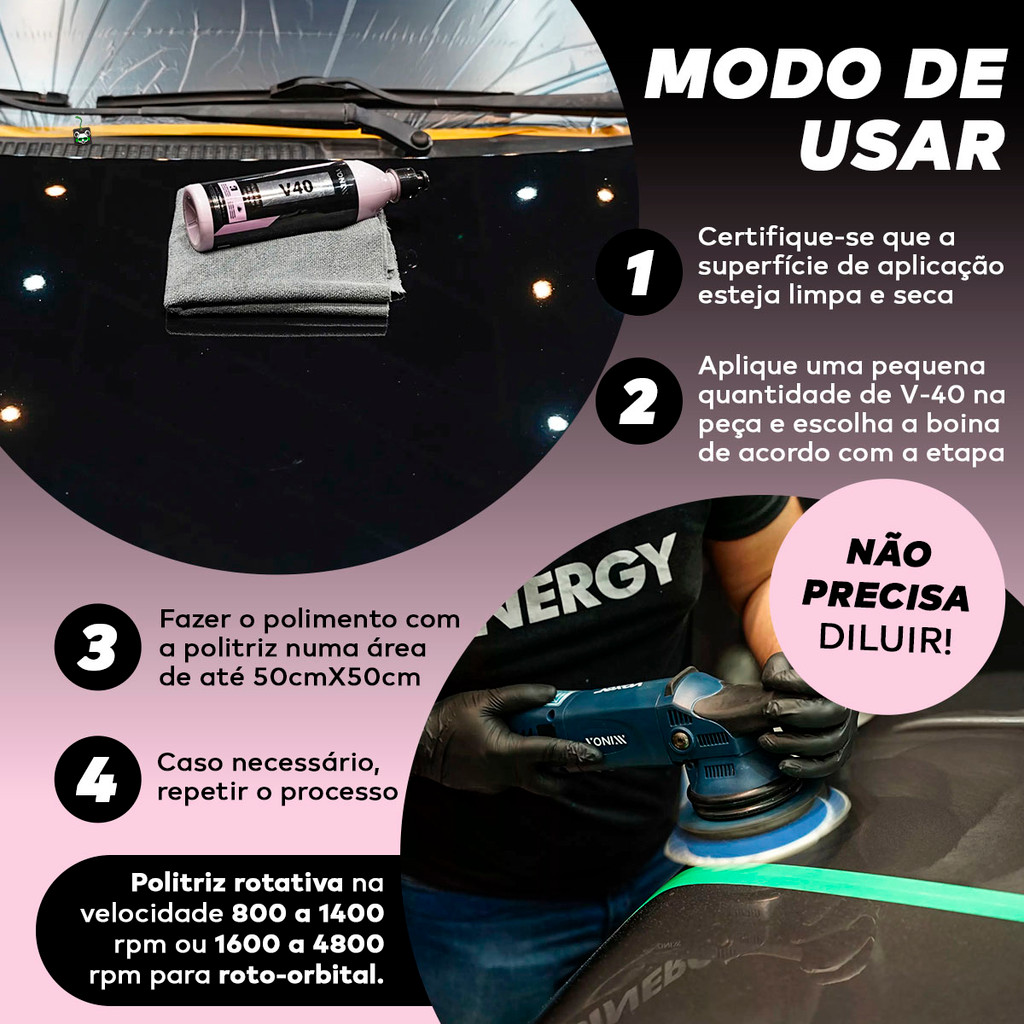 Polidor Automotivo Corte Refino Lustro Proteção 4 em 1 V40 Cera Carnauba 500ml Vonixx