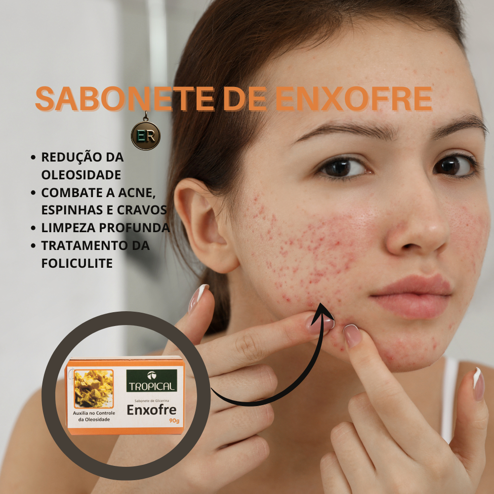 Sabonete Barra Enxofre Facial e corporal Limpeza do corpo e rosto Seca Espinhas Remove Oleosidade