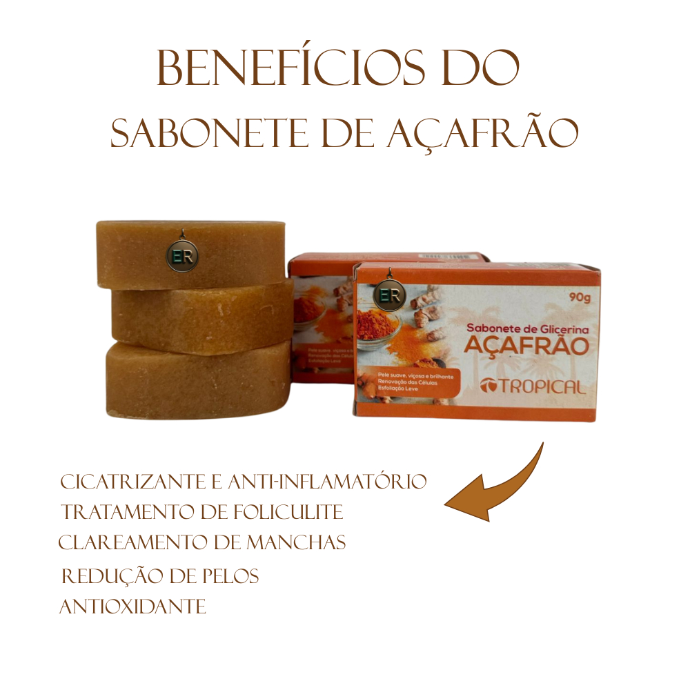 Sabonete em Barra de Açafrão/Cúrcuma Antioxidante Tropical Cosmeticos Kit com várias unidades