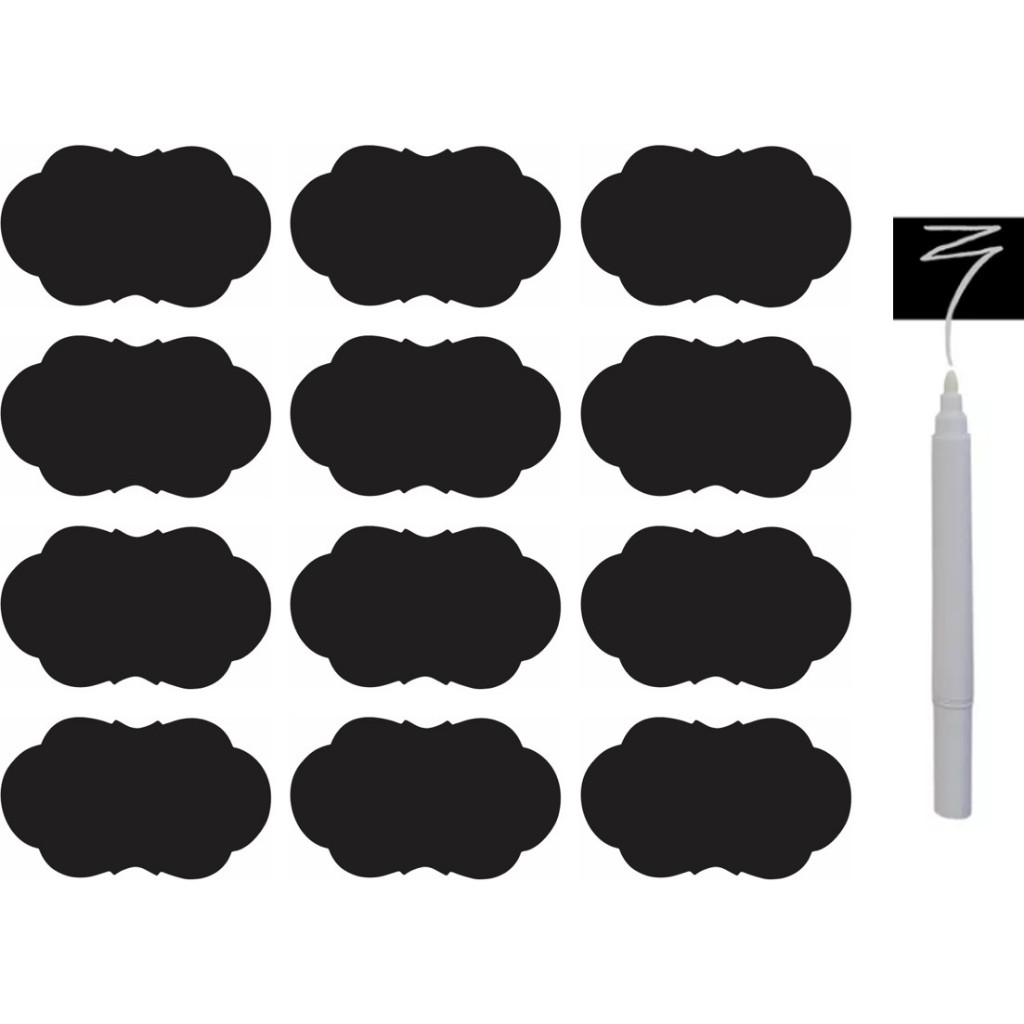 48 Etiquetas Adesivas 5x3cm + 1 Caneta Giz Liquido Branca