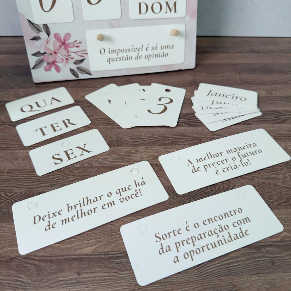 Calendário Permanente de Mesa Decorativo com Frases Motivacionais Reutilizável Infinito Pérpetuo