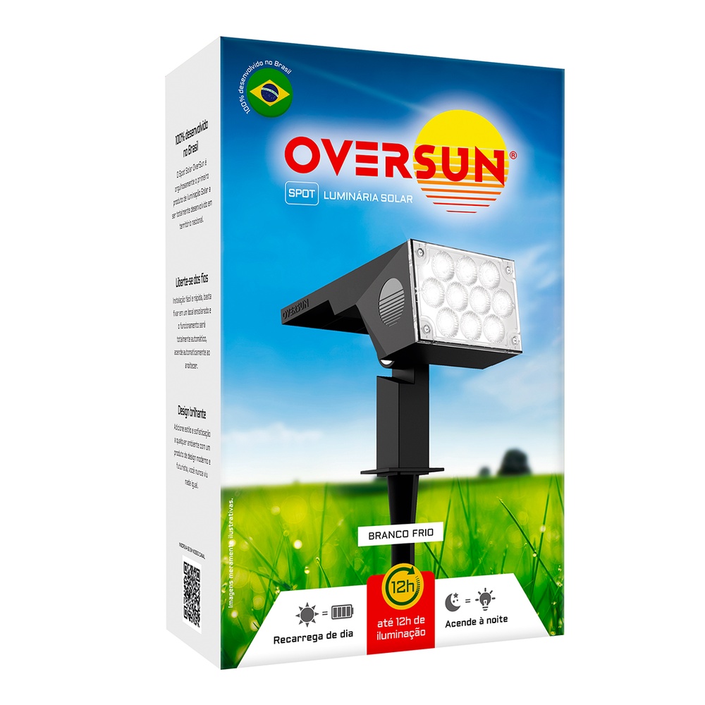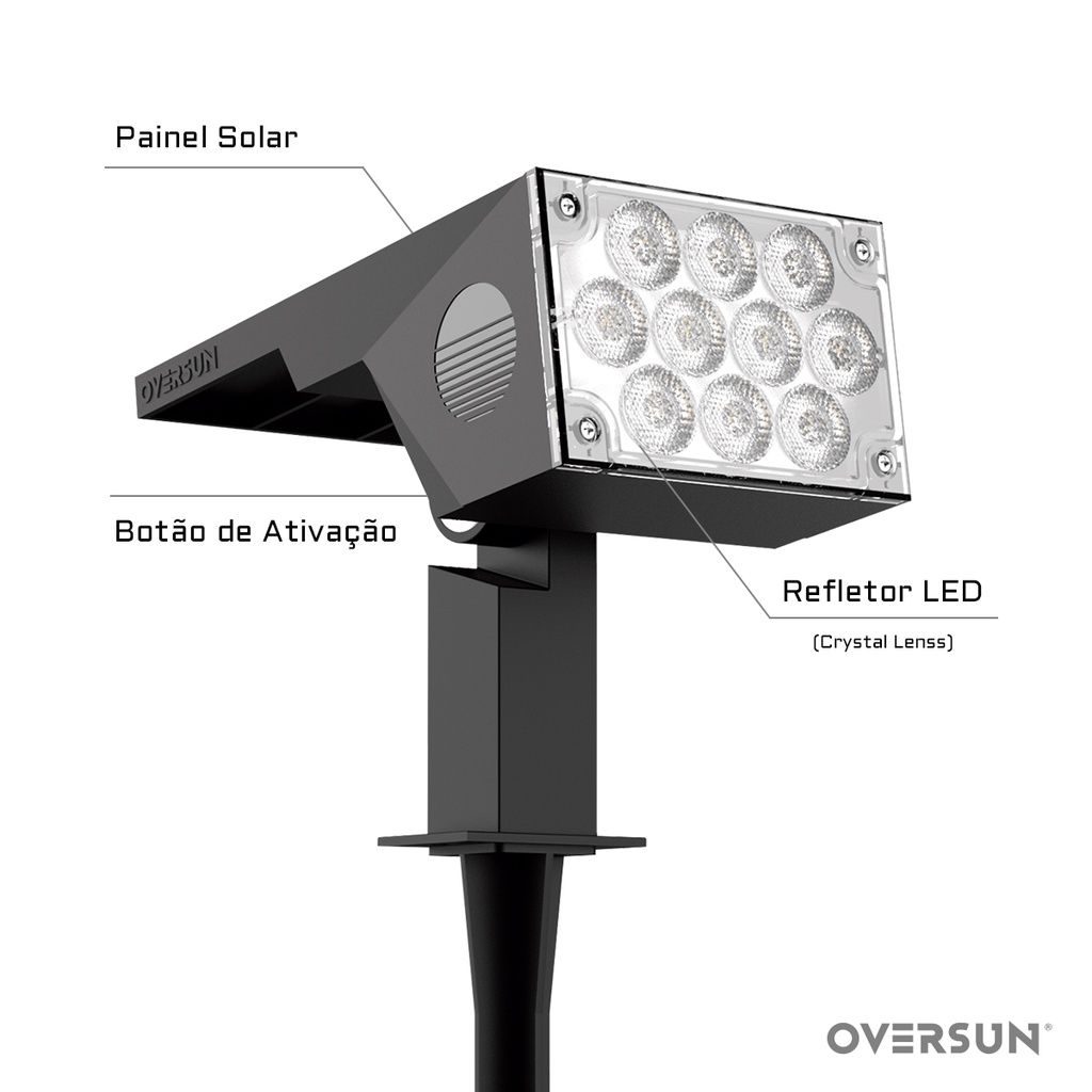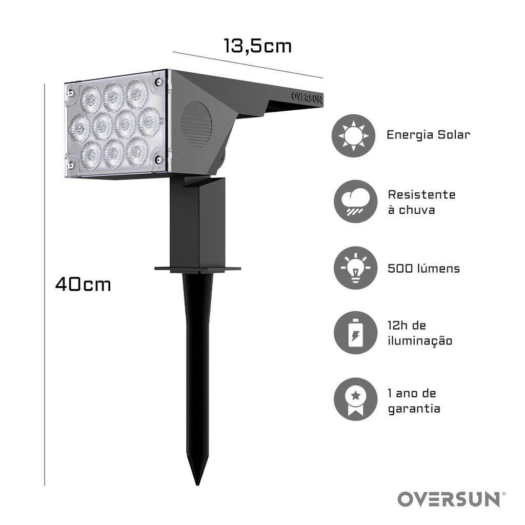 Luminária 12h Spot Solar 60w Potente Jardim Branco Frio Oversun
