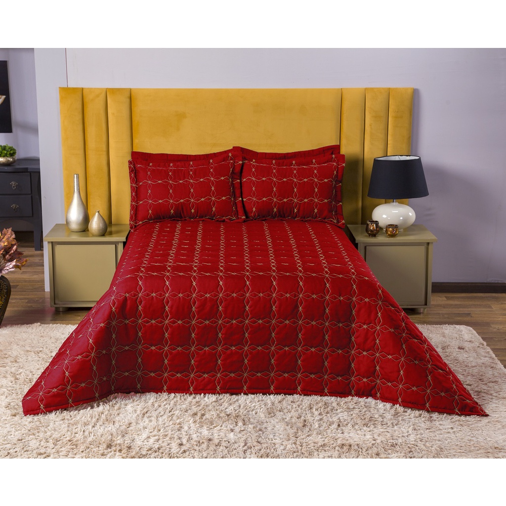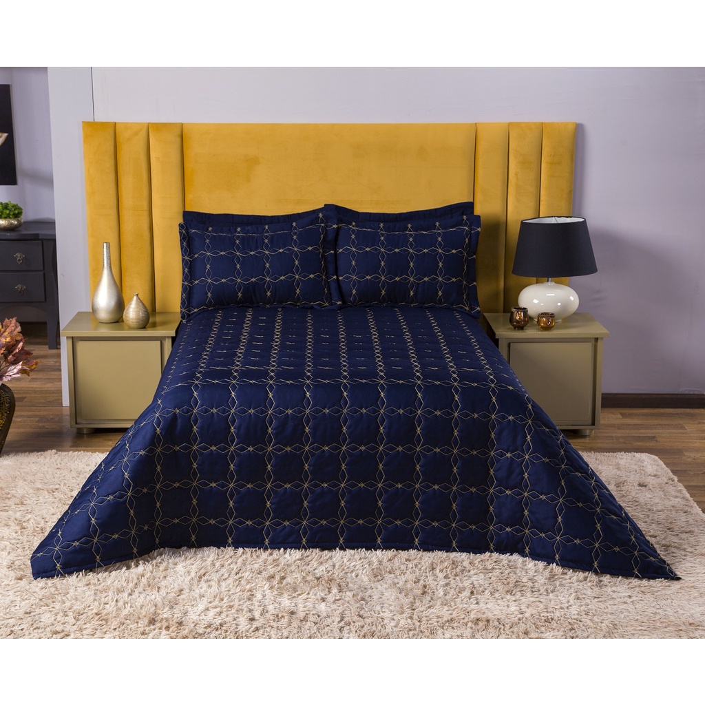 Cobre Leito Mosaico Queen 3 Peças Todo Bordado Detalhe Dourado Com Forro Várias Cores