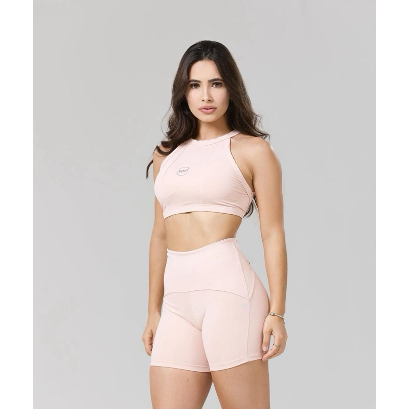 Conjunto Fitness Poliamida Premium Top Costa Nua e Short Cintura Alta