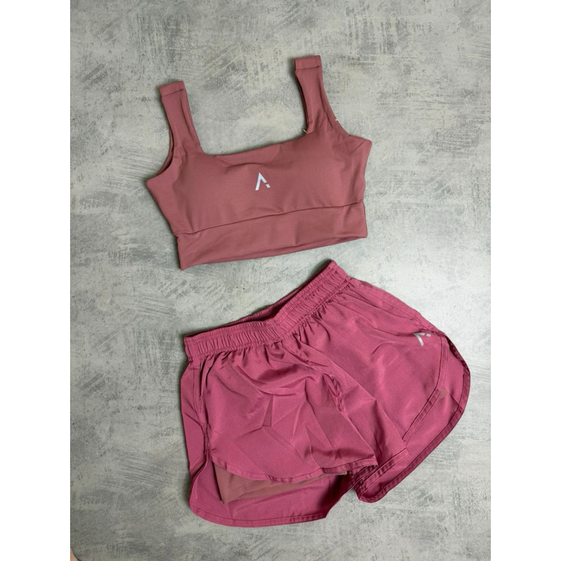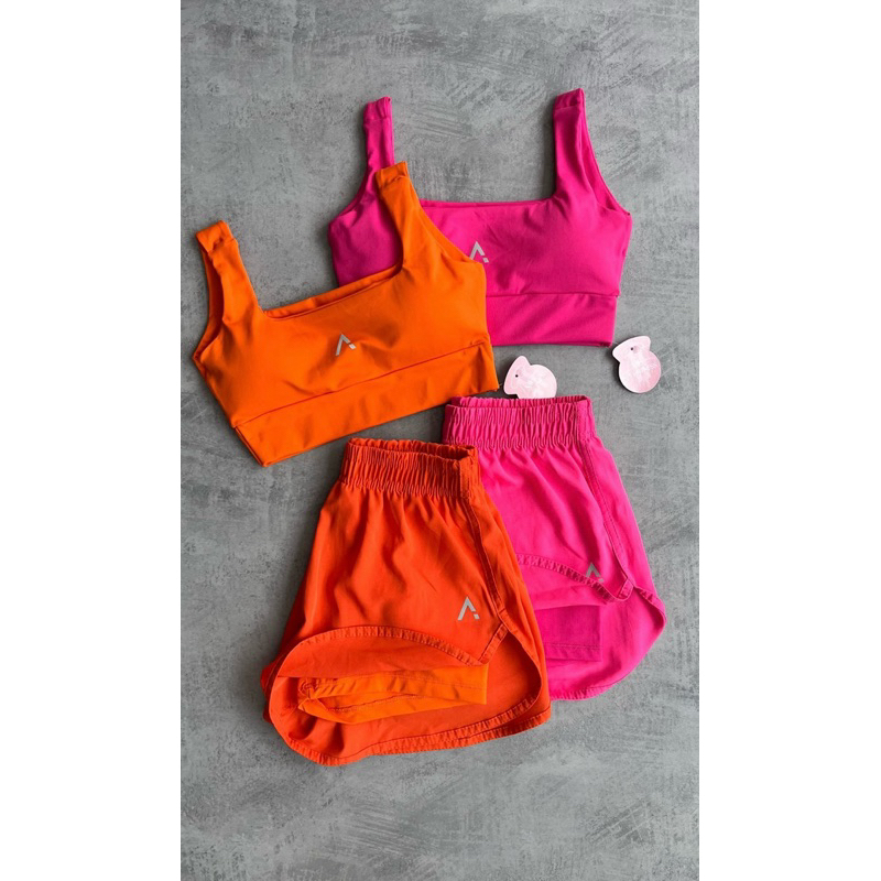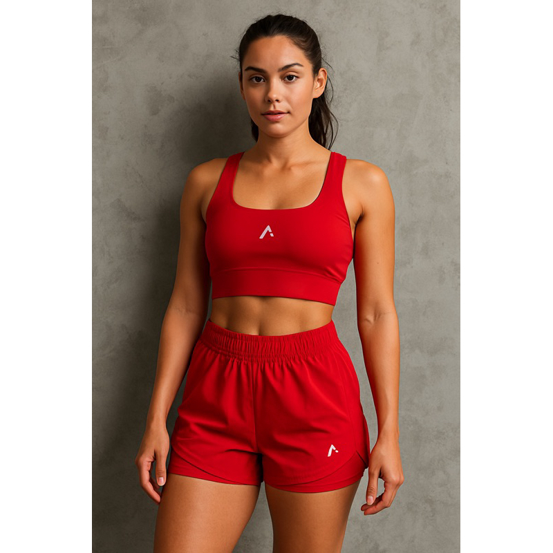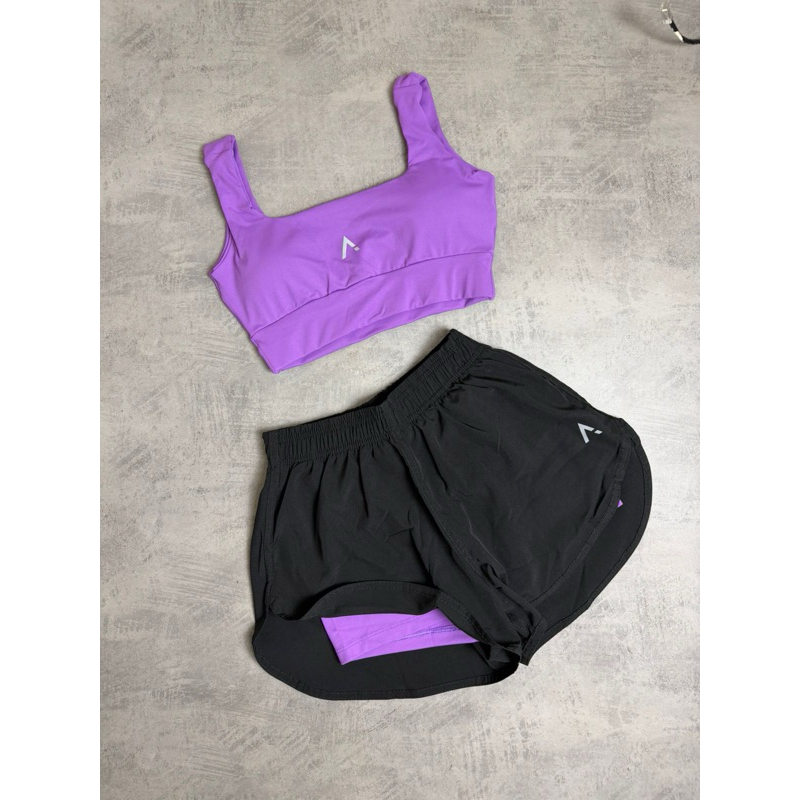 Conjunto Short Duplo Fitness Premium Poliamida Com Tactel E Top Com Bojo