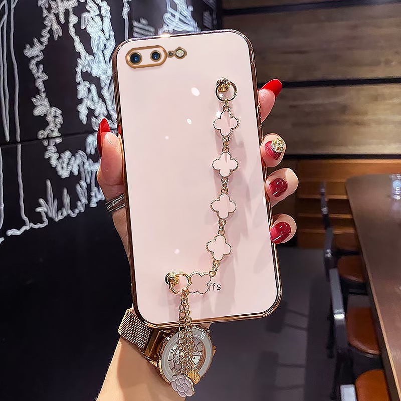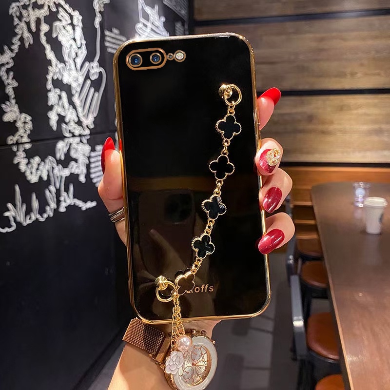 Para iPhone 8 7 6 Plus Se 2020 Feminino Pulseira Trevo de Quatro Folhas Estojo Macio Sorte