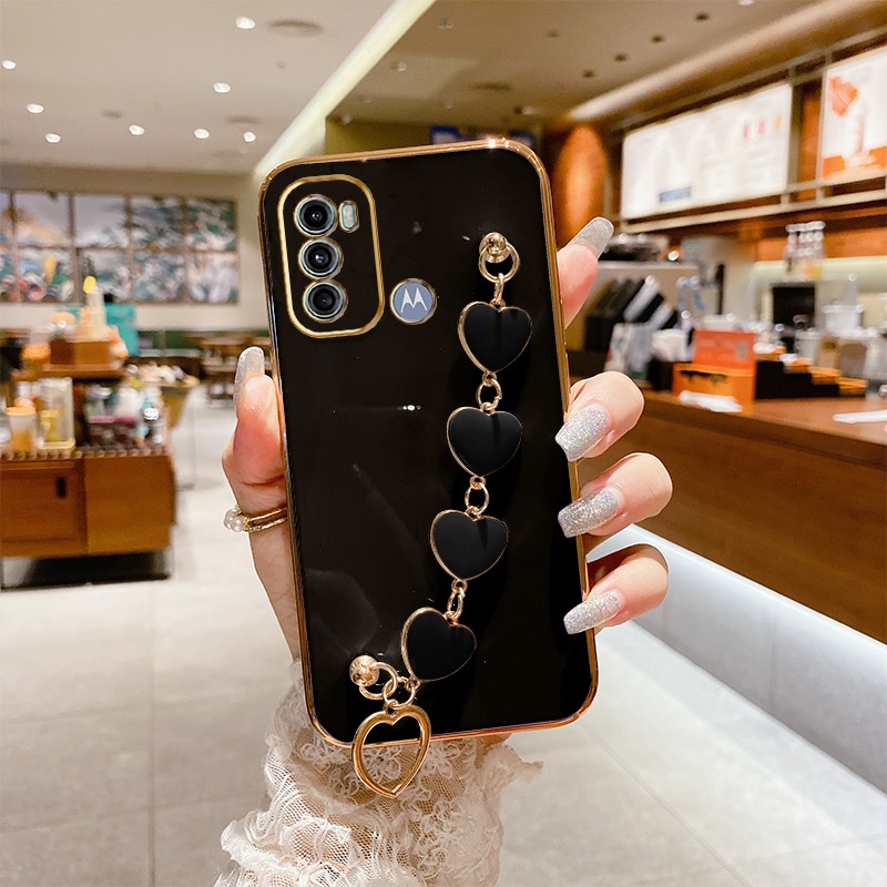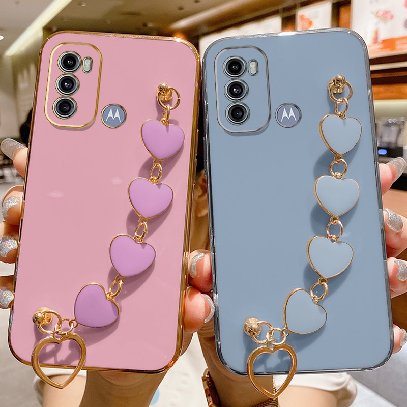 Capa Para Telefone Motorola Moto G60S/G60 G40 Fusion/G50 5G Fashion Heart Bracelet Nova Câmera Com Borda Reta