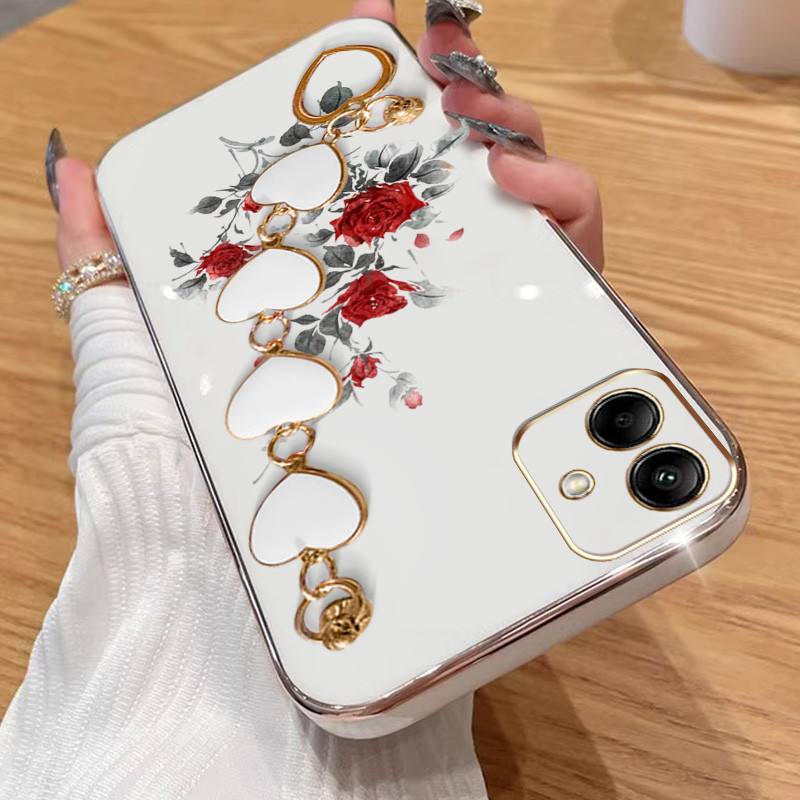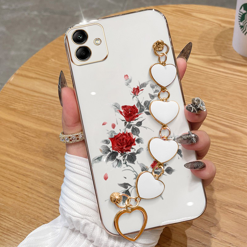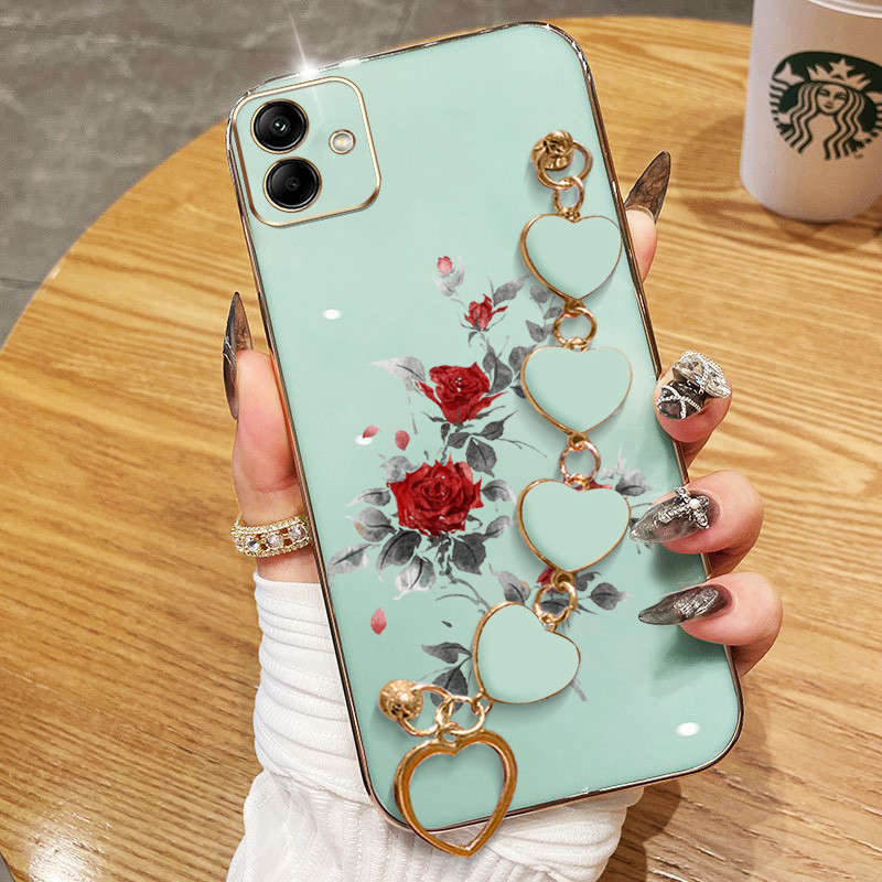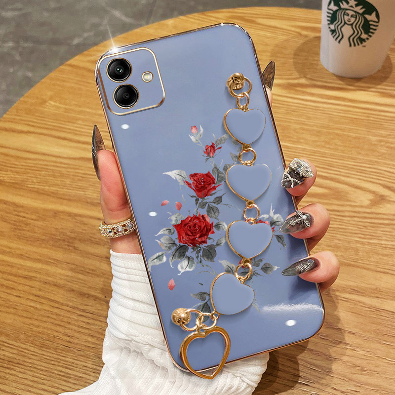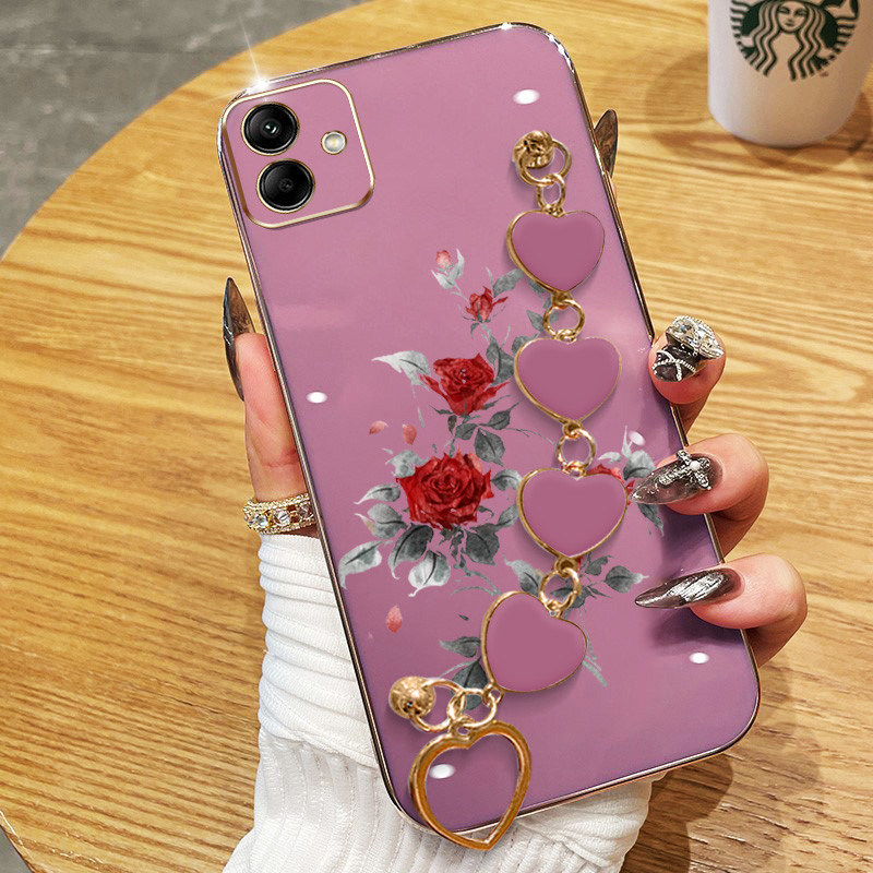 Invólucro Para Samsung Galaxy A07 A06 4G A05S A05 A04E A04 Rosa Vermelha Galvanoplastia Anti Queda Capa De Telefone Com