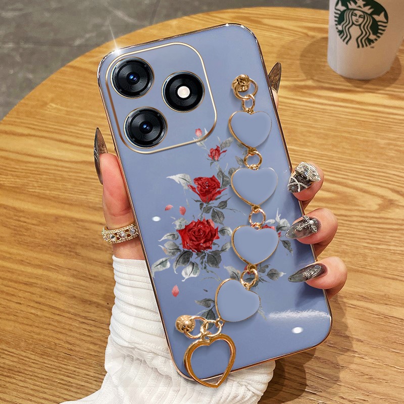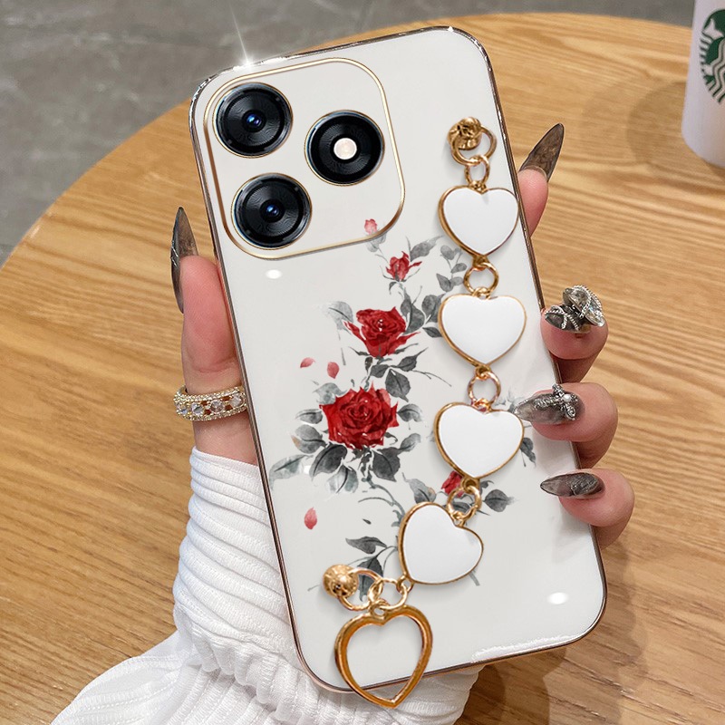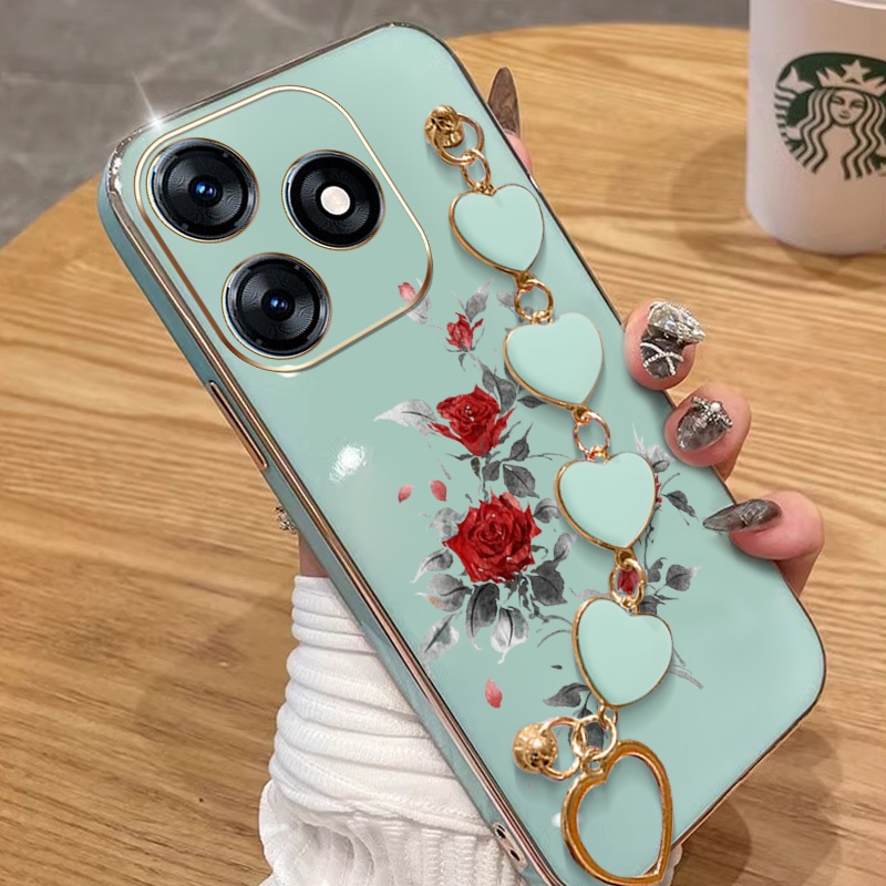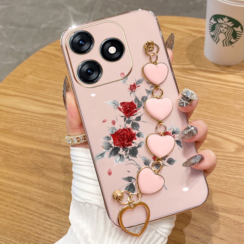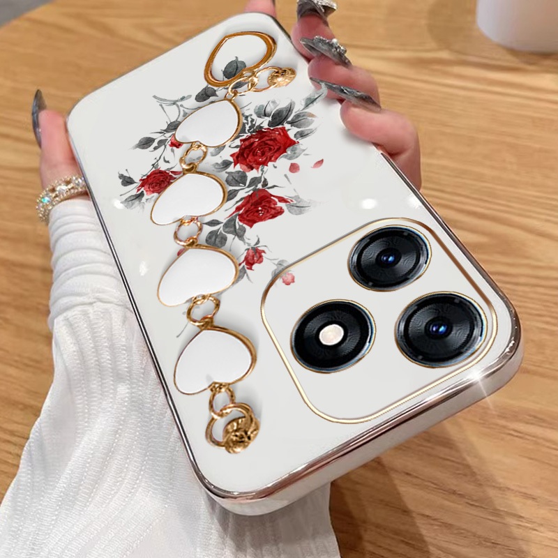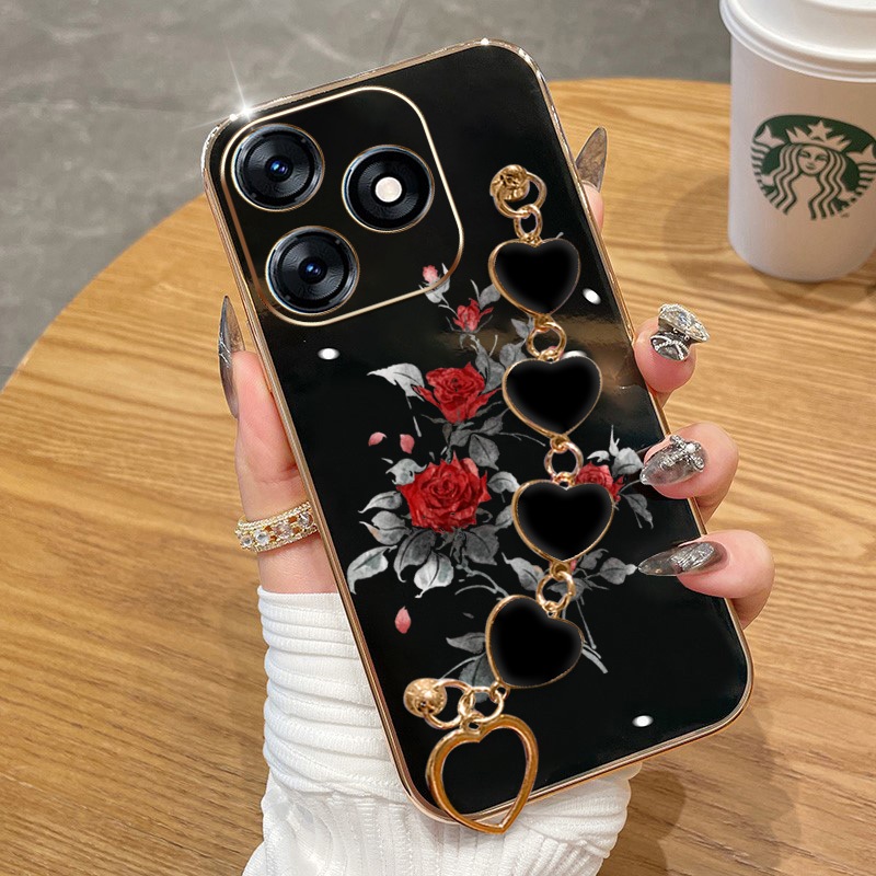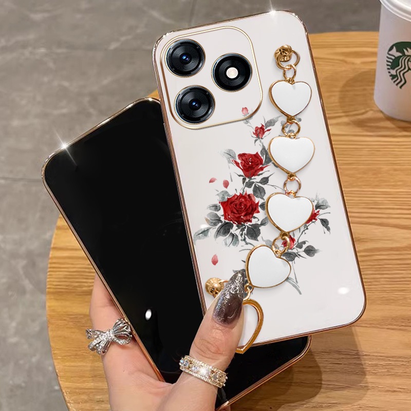 Capa Para Infinix Smart 8 Pro Plus Hot 40i Tecno Spark Go 2024 20 20C Pop 8 Itel P55 4G Red Rose Galvanoplastia De Telef