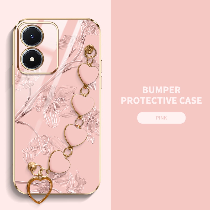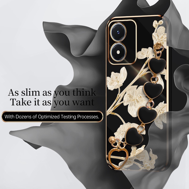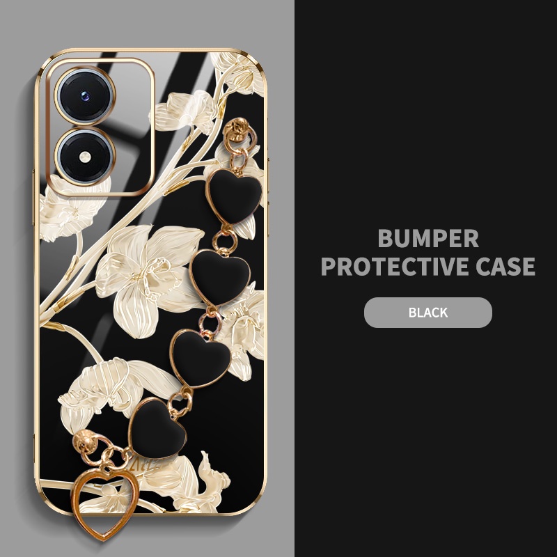 Caixa Xiaomi Redmi 13C 4G 5G Poco C65 Criativa Bauhinia Flower Band Bracelete Do Amor De Luxo Silicone Galvanizado Anti Impacto Protetora