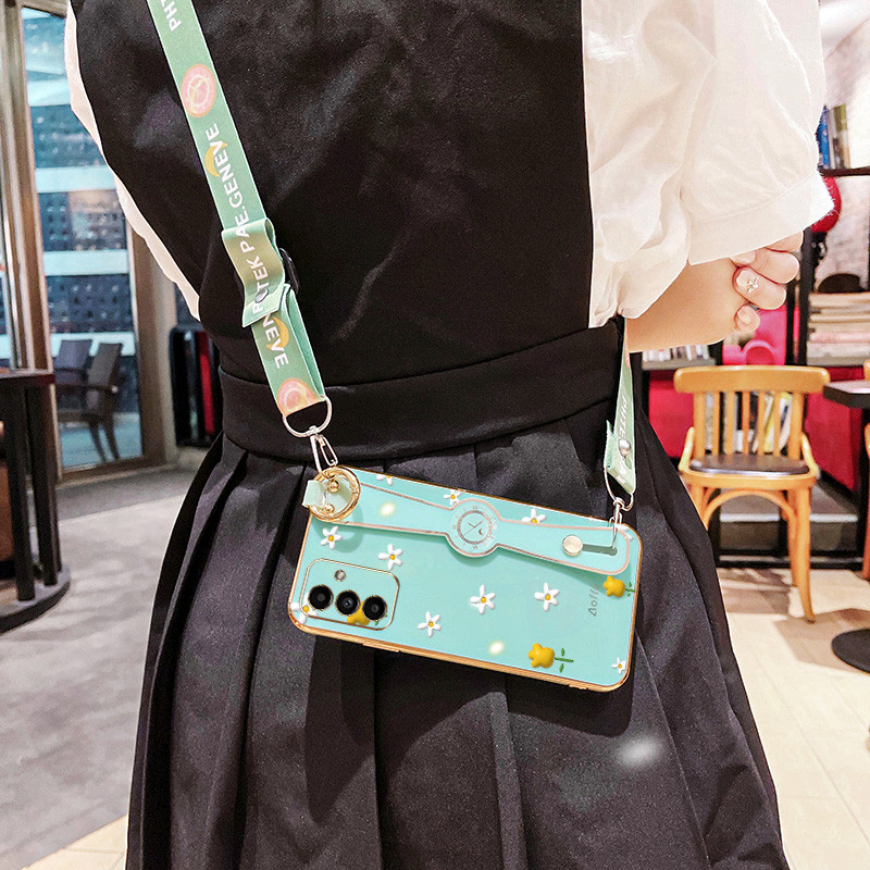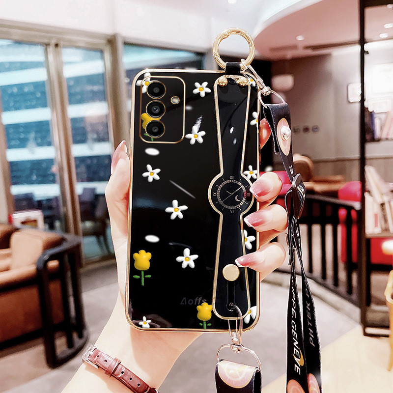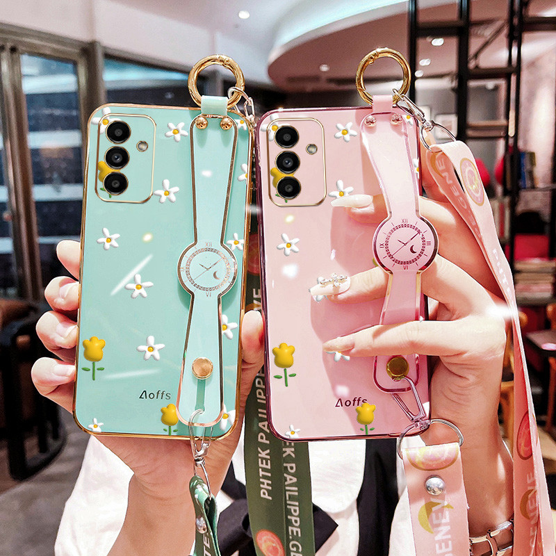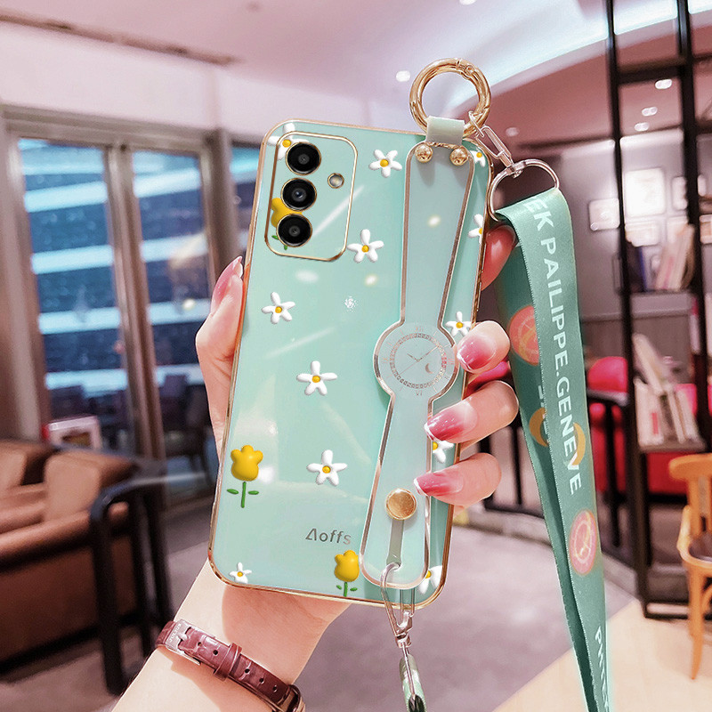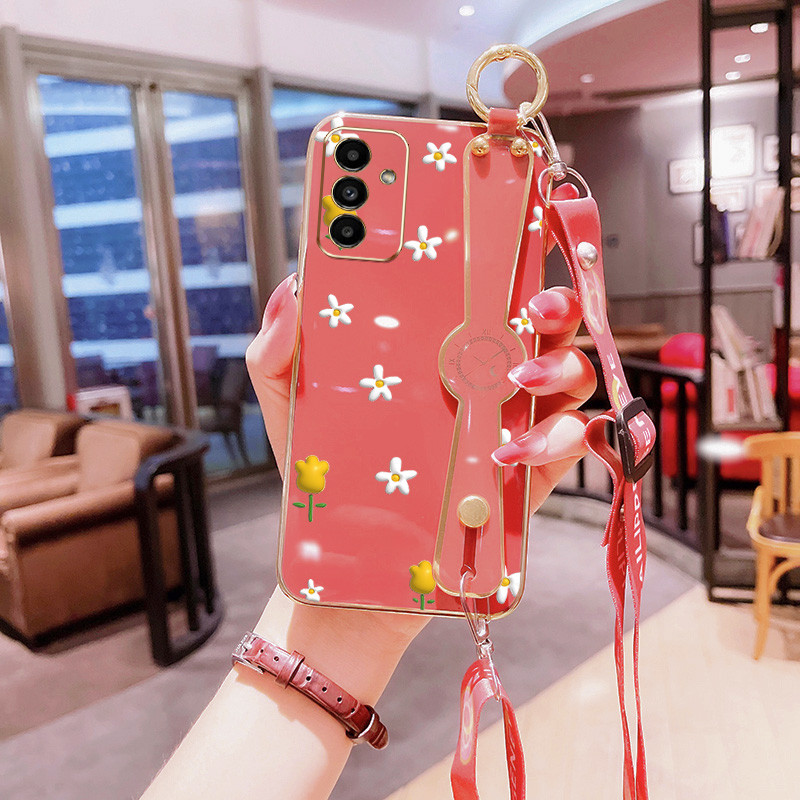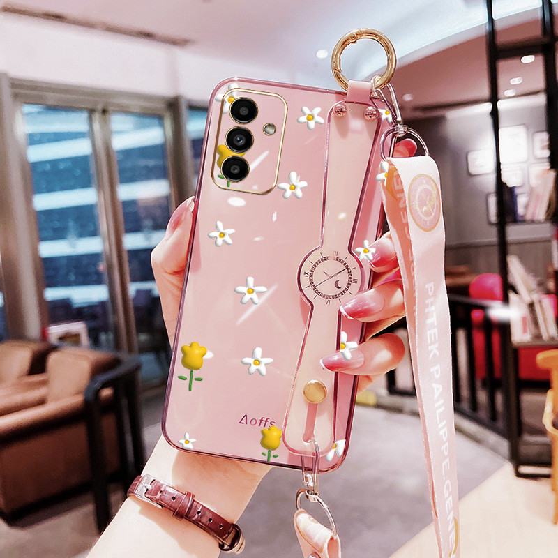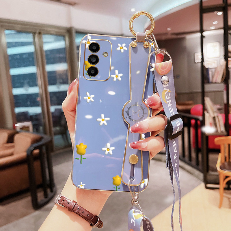 Capa De Telefone Mini Flores Para Samsung Galaxy A55 A35 A25 A54 A34 A16 5G A15 A14 A13 4G 5G A24 A04S 4G Caixa De Suporte De Alça De Pulso Anti-Queda Com Corda Longa