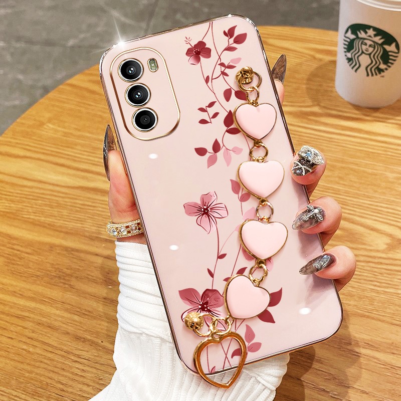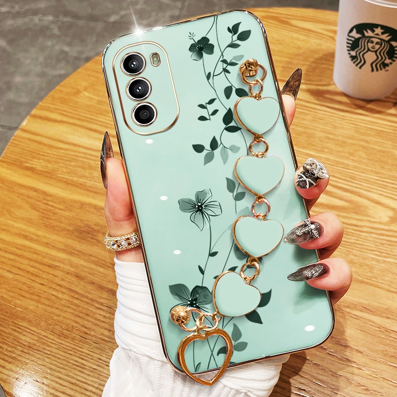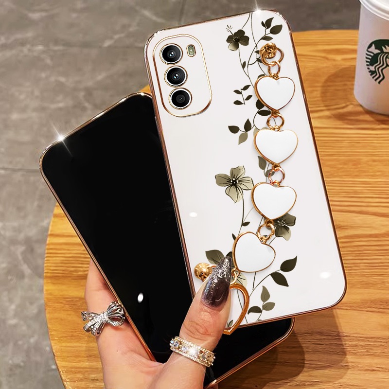 Invólucro Para Motorola Moto G22 G32 G42 G52 G82 G71S Elegantes Plantas De Escalada Com Pulseira De Amor Galvanizada À P