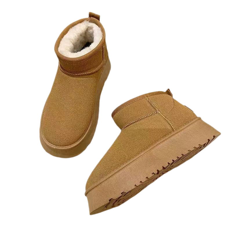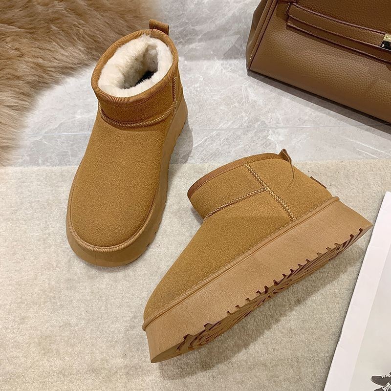 Botas De Neve Femininas Inverno 2025 Nova Sola Grossa Mais Veludo Grosso Pele Quente Sapatos De Algodão Integrados