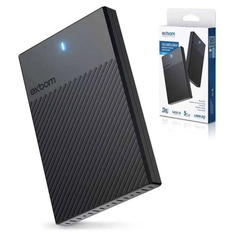 Case para HD Externo SSD Slim Portatil 2.5 Polegadas USB 3.0 EXBOM XBOX PS2 PC