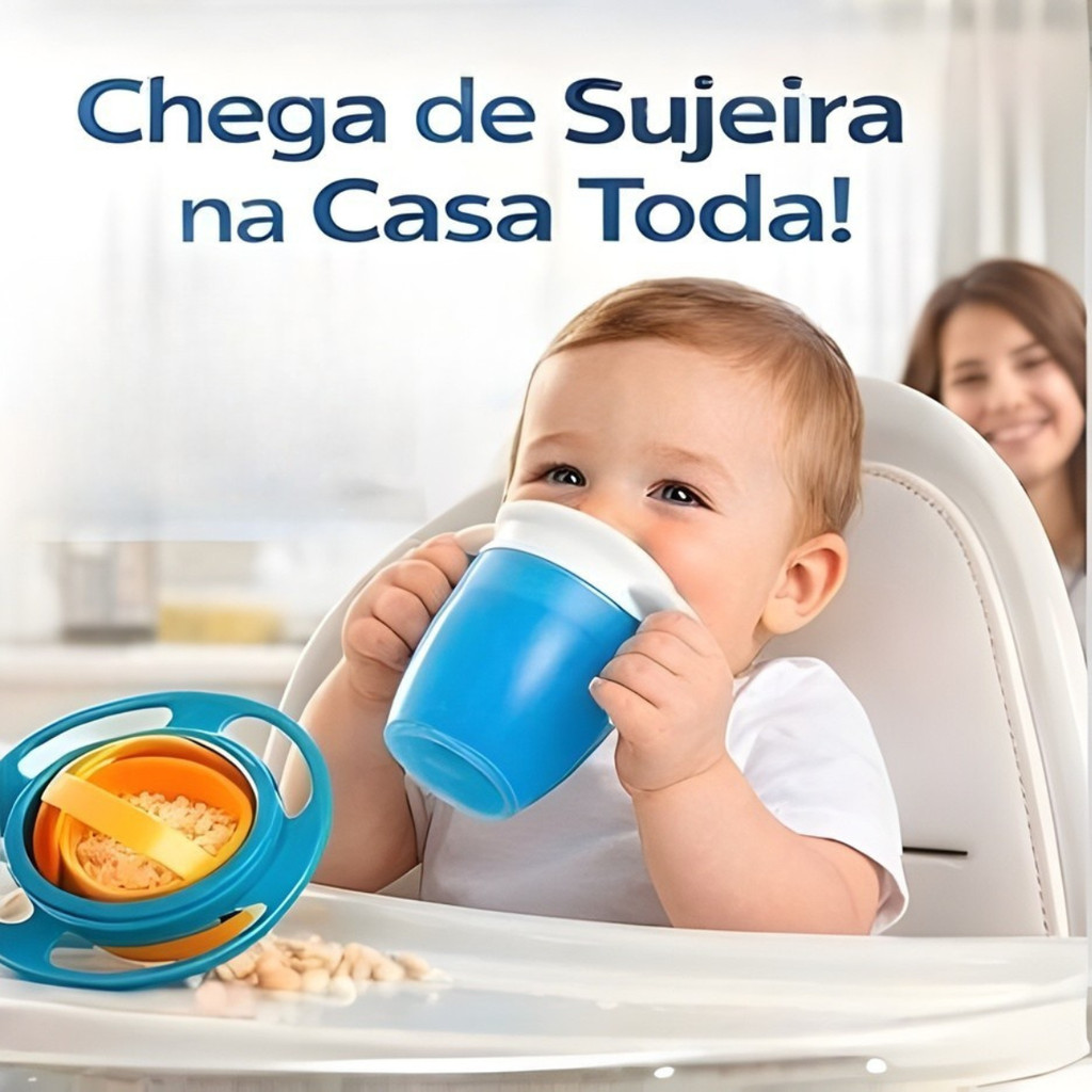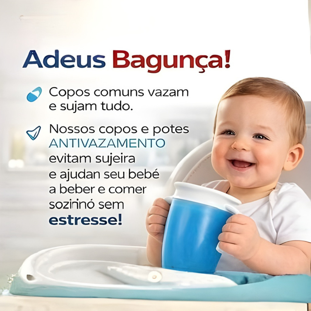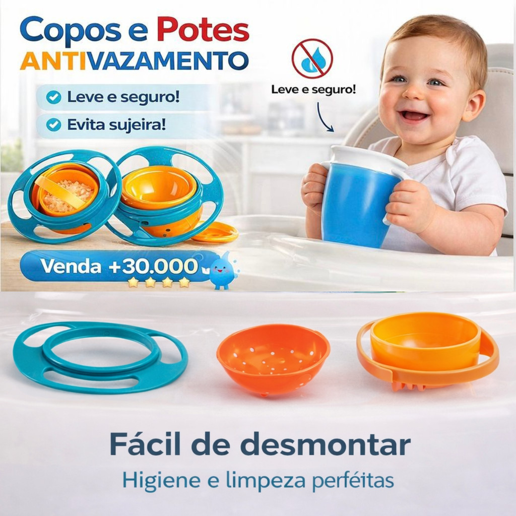 Kit Prato + Copo Antivazamento Infantil Não Cai Bebida Comida Prato Mágico Giratório 360° Transição Introdução Alimentar