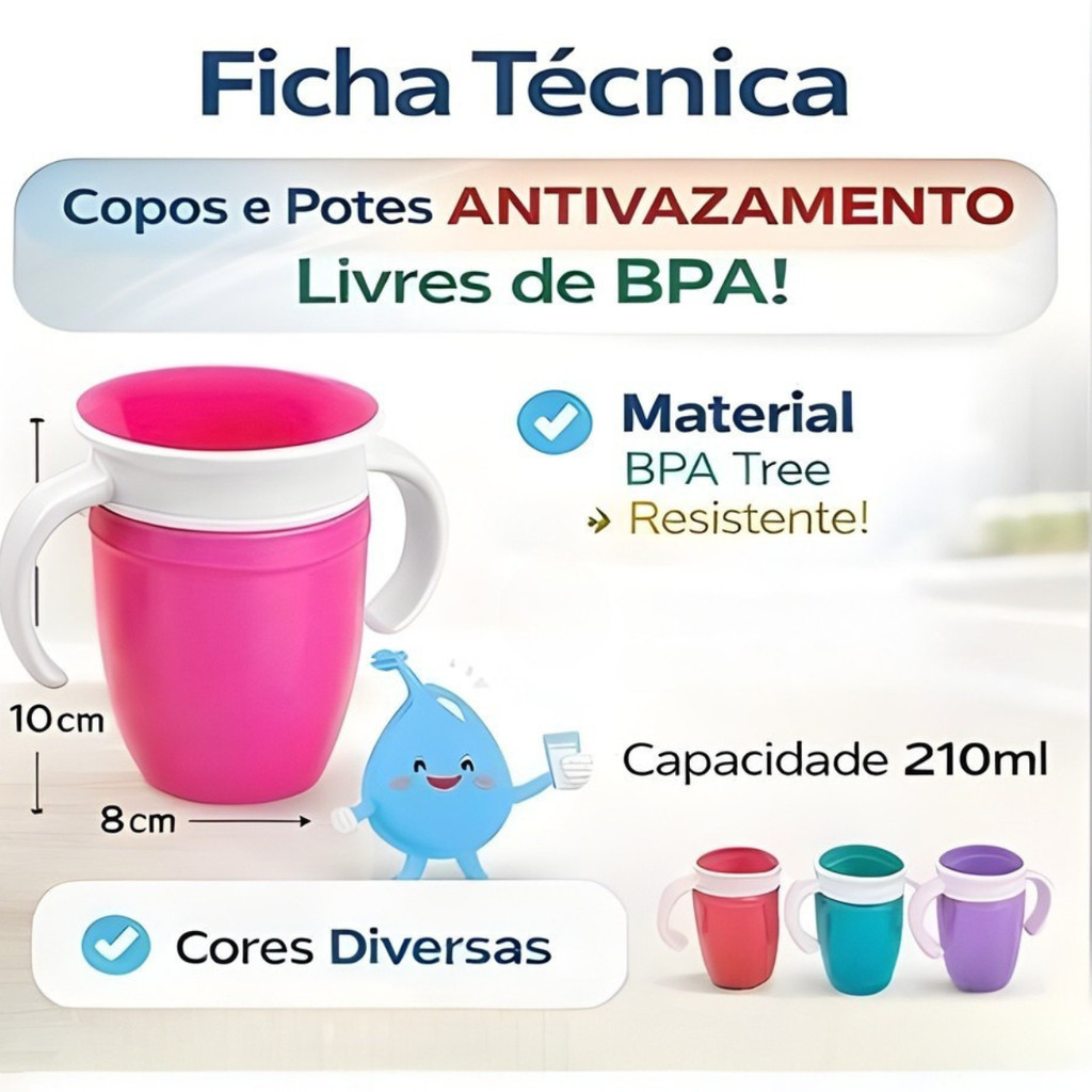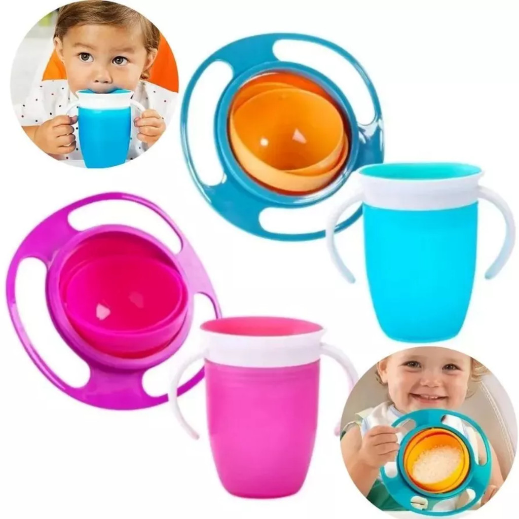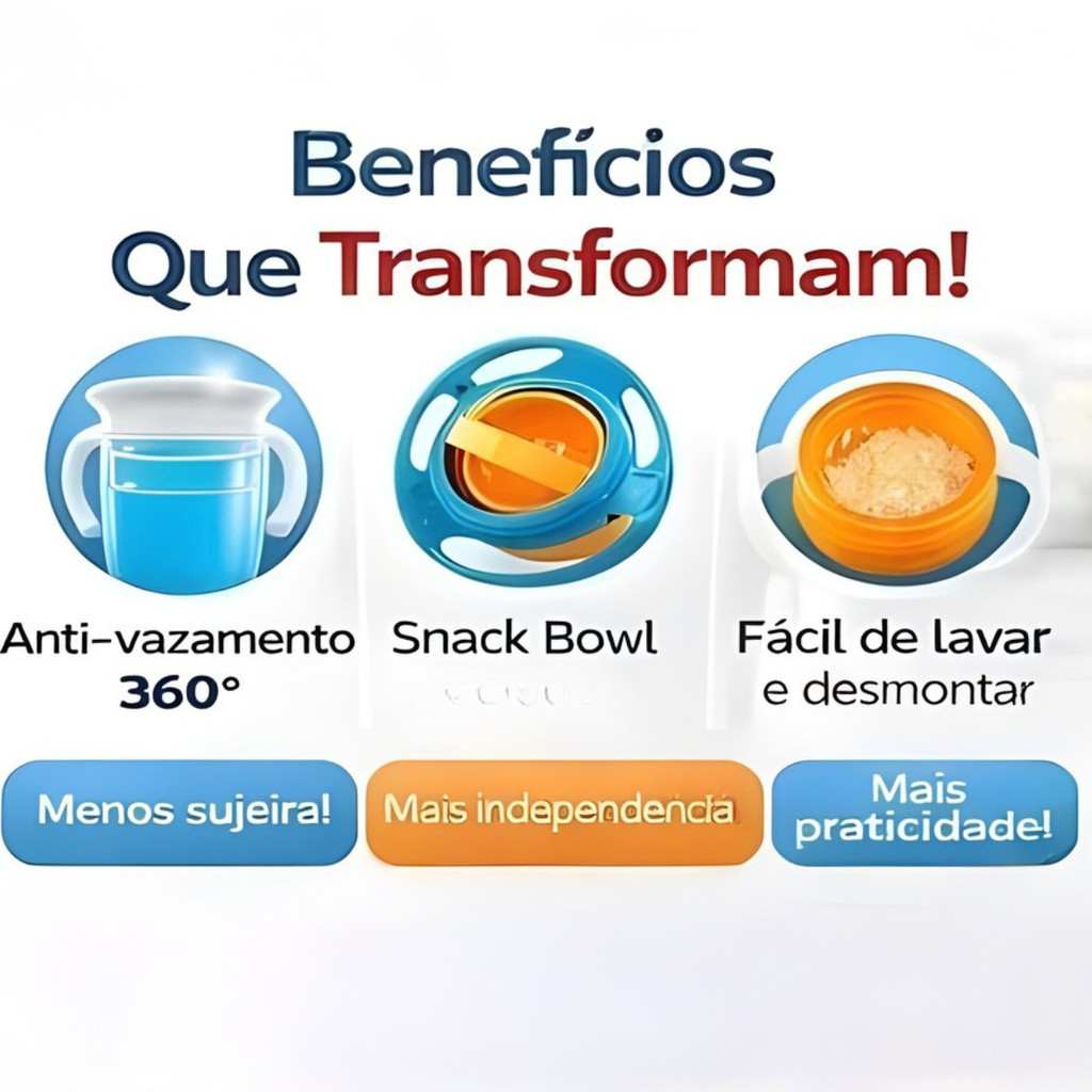 Kit Prato + Copo Antivazamento Infantil Não Cai Bebida Comida Prato Mágico Giratório 360° Transição Introdução Alimentar