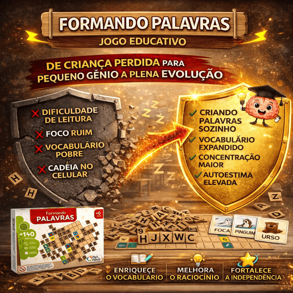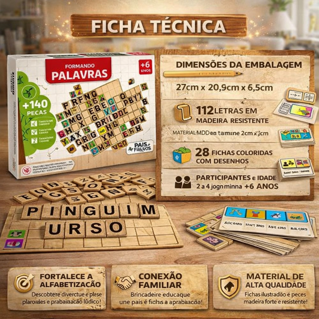 Brinquedo Educativo Formando Palavras Pedagógico Madeira e Papel