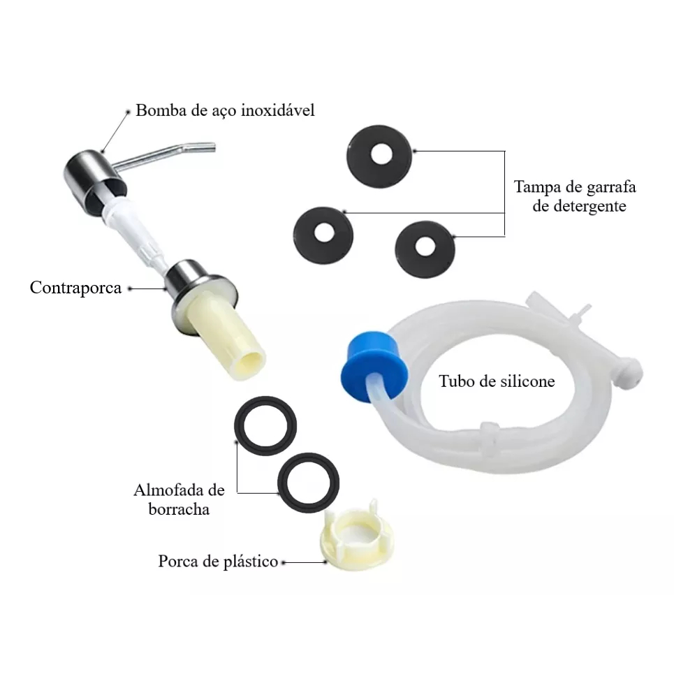 Dispenser Mangueira Dosador Embutir Cuba Pia Galao Flexivel Cor Prateado
