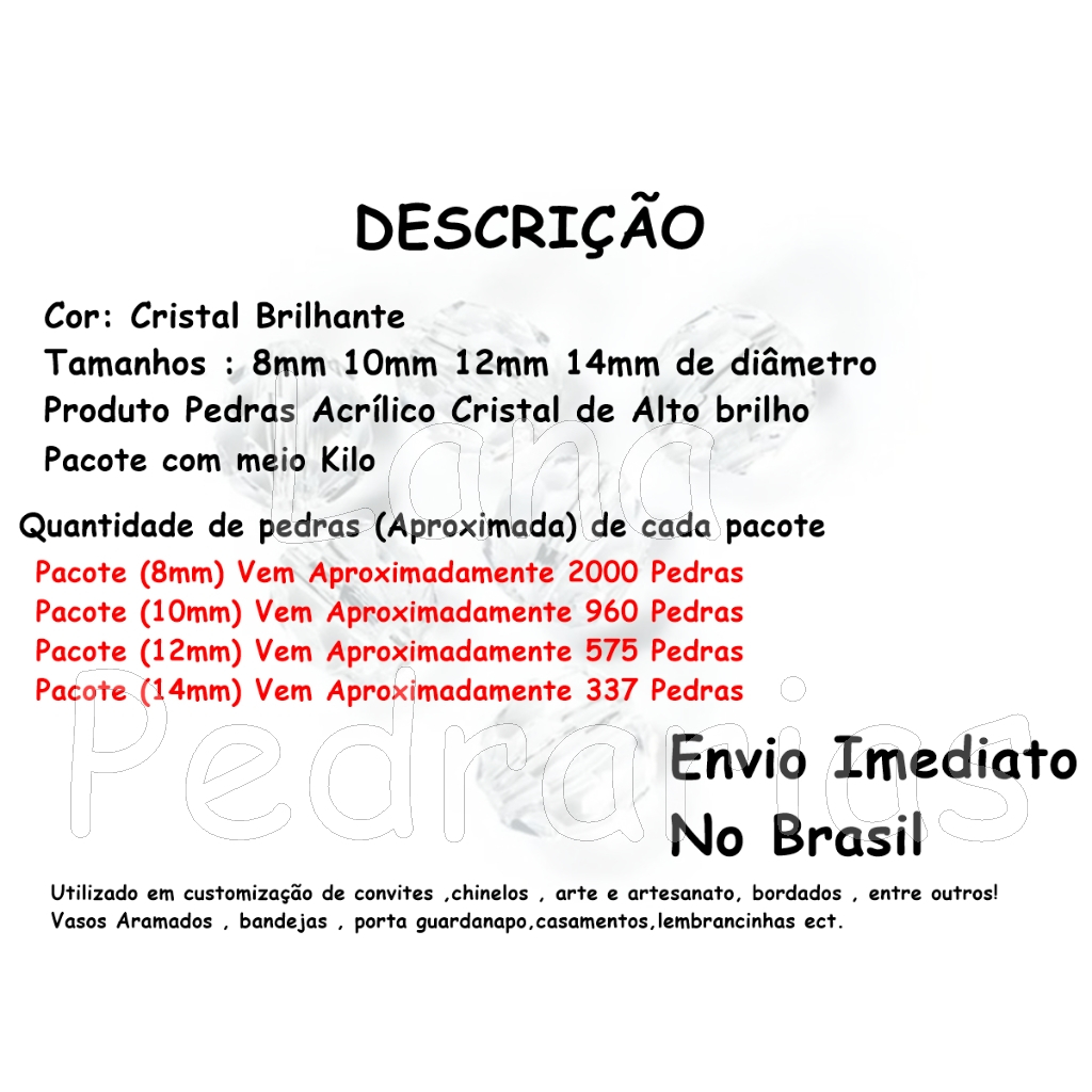 Pedrarias Cristal Acrílico Facetado 500gr com Furo Artesanato Luxo Menor Preço