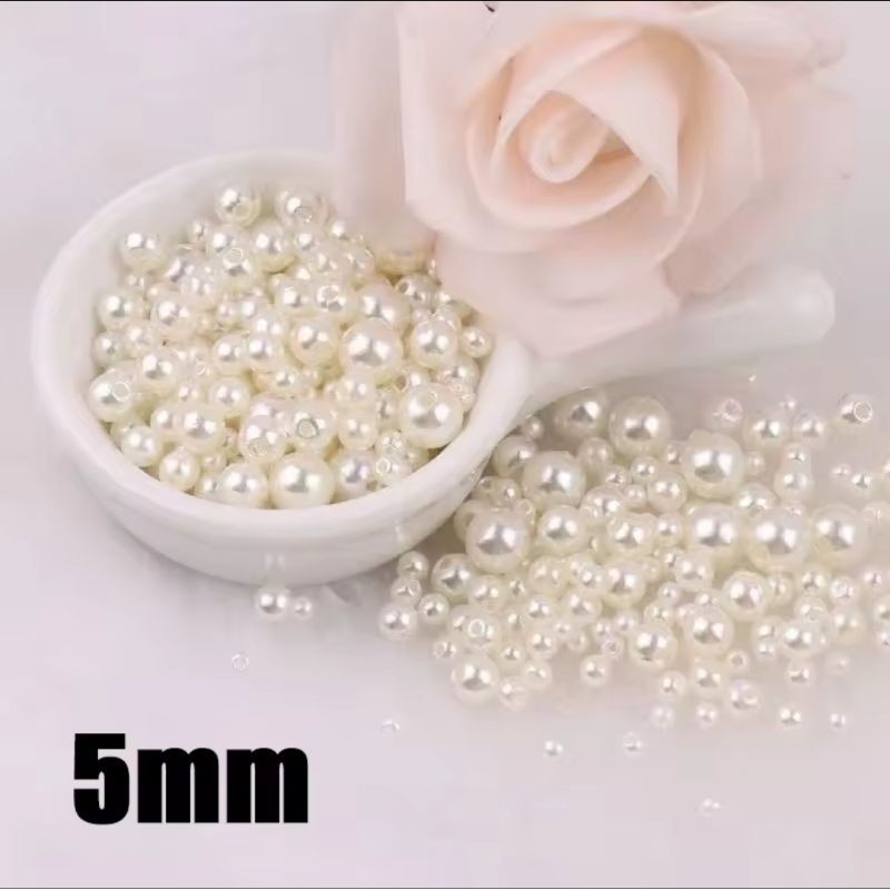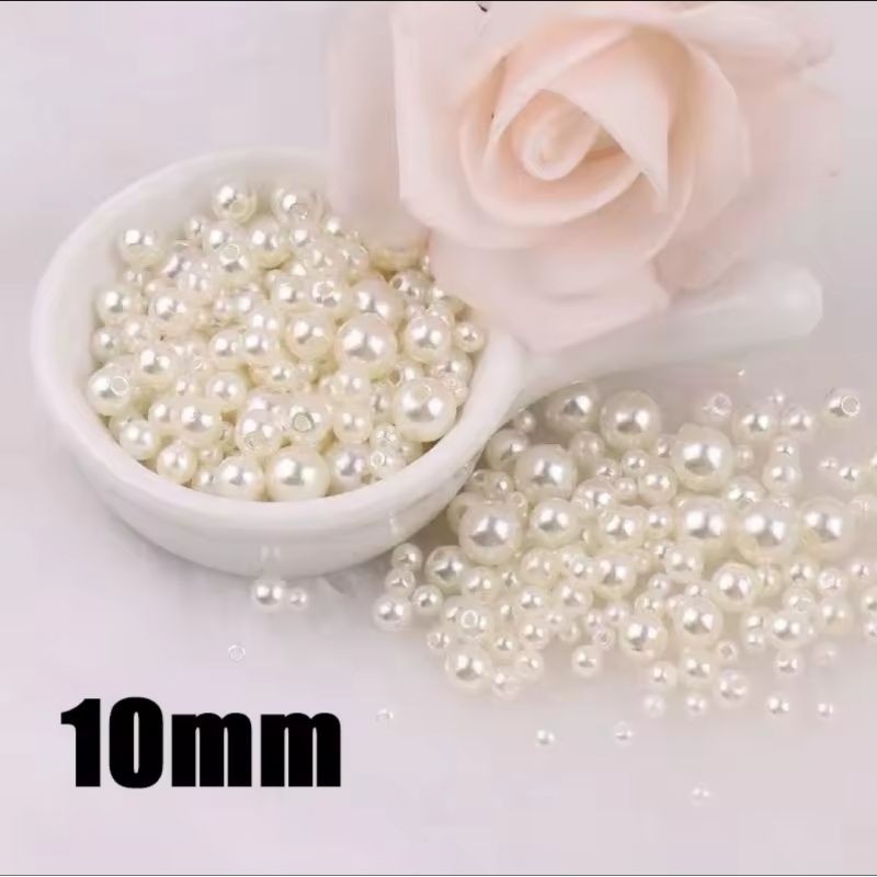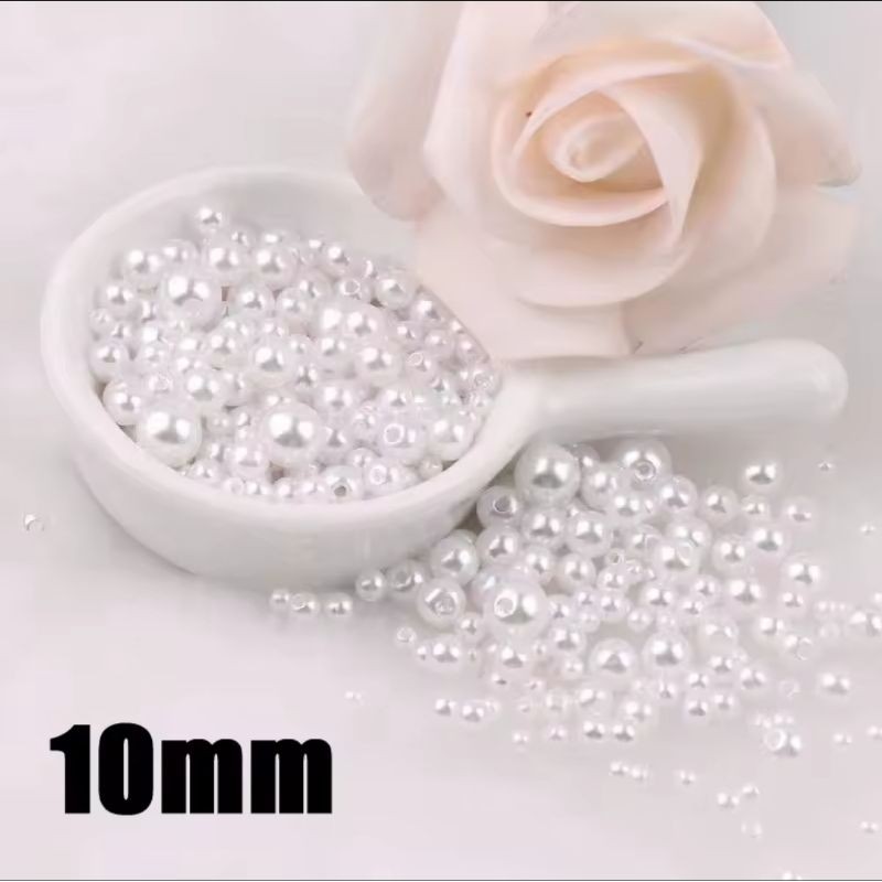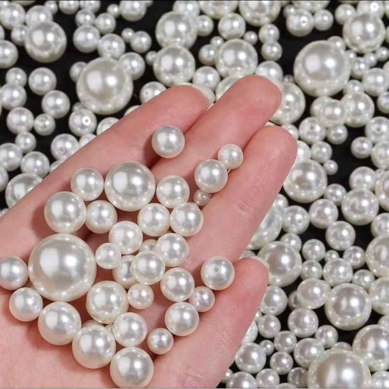 Pérola inteira ABS 500G Creme e Branco com furo Pedra para artesanato perolada colar pulseira brinco