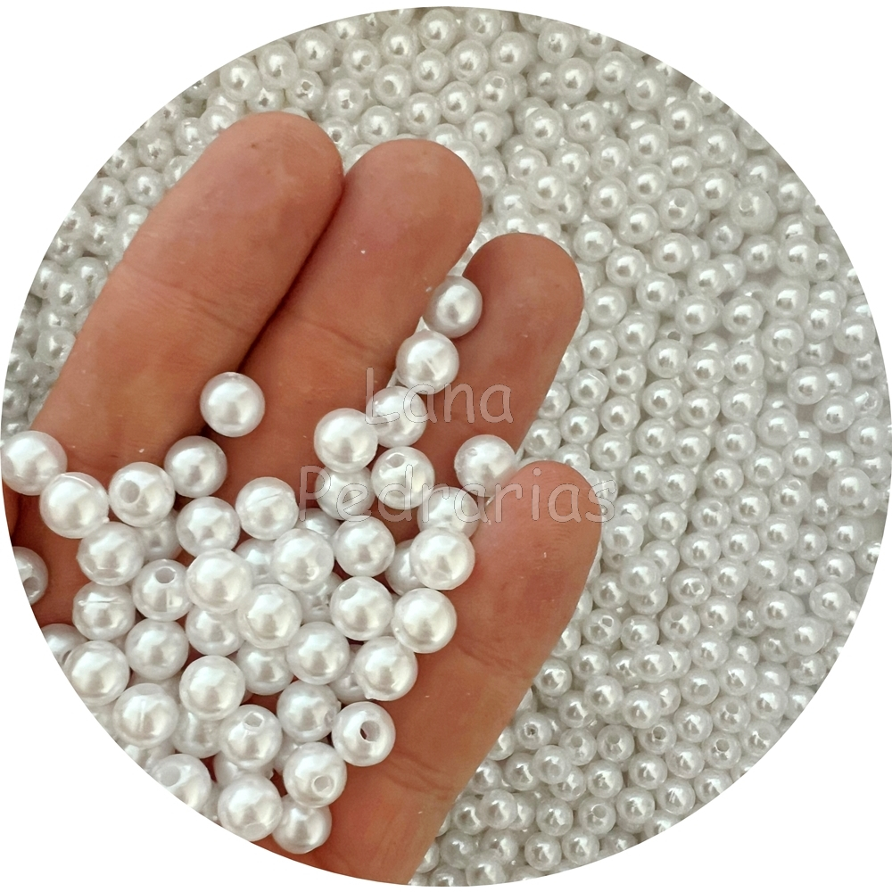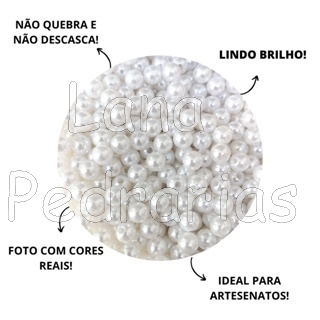 1000 Unidades de Pérola ABS Inteira 8MM - com Furo Passante Terço 250G