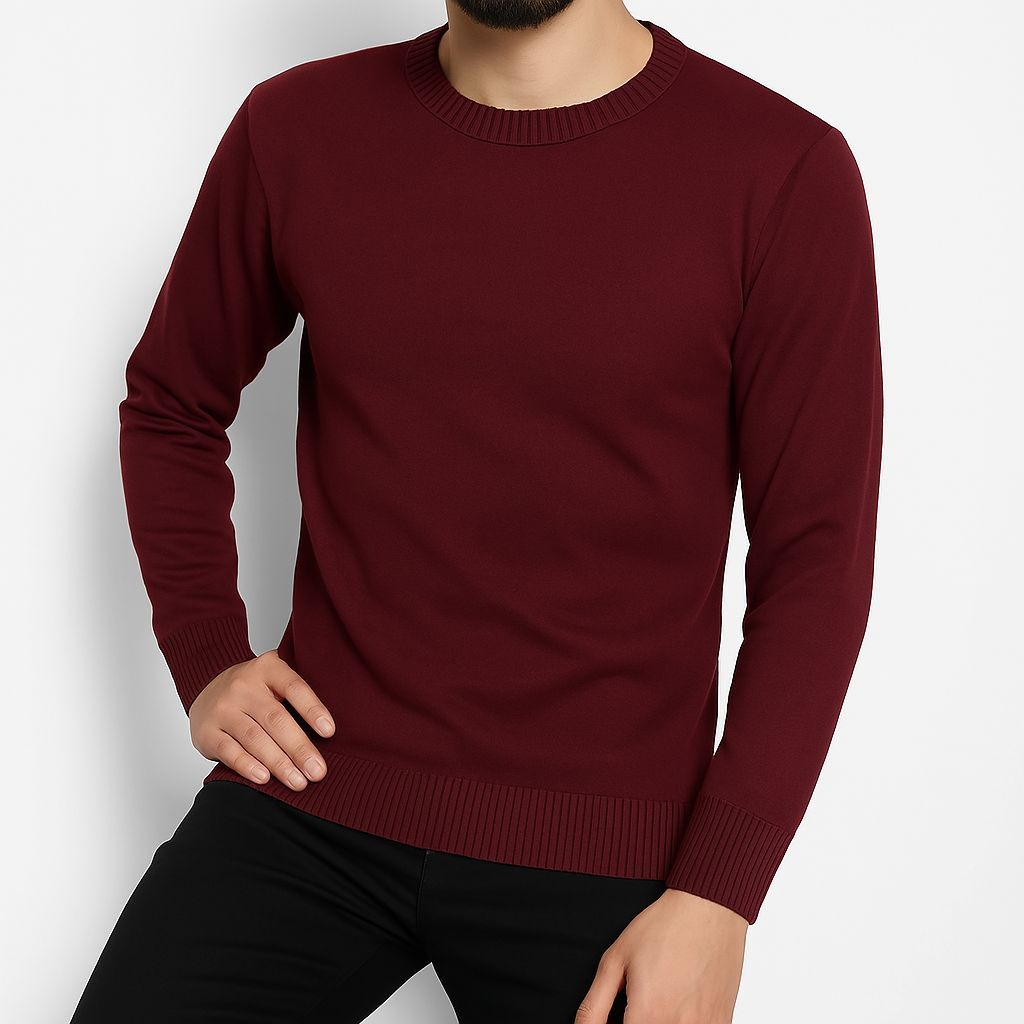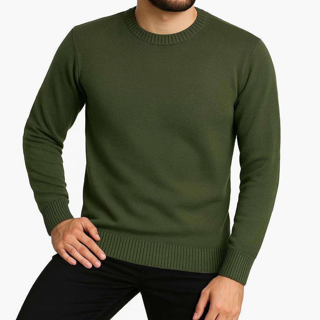 Sueter Masculino Tricot Lã Masculina Canelada Gola Redonda