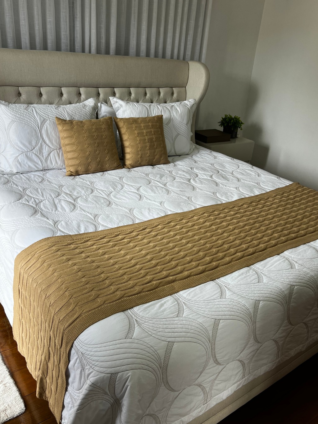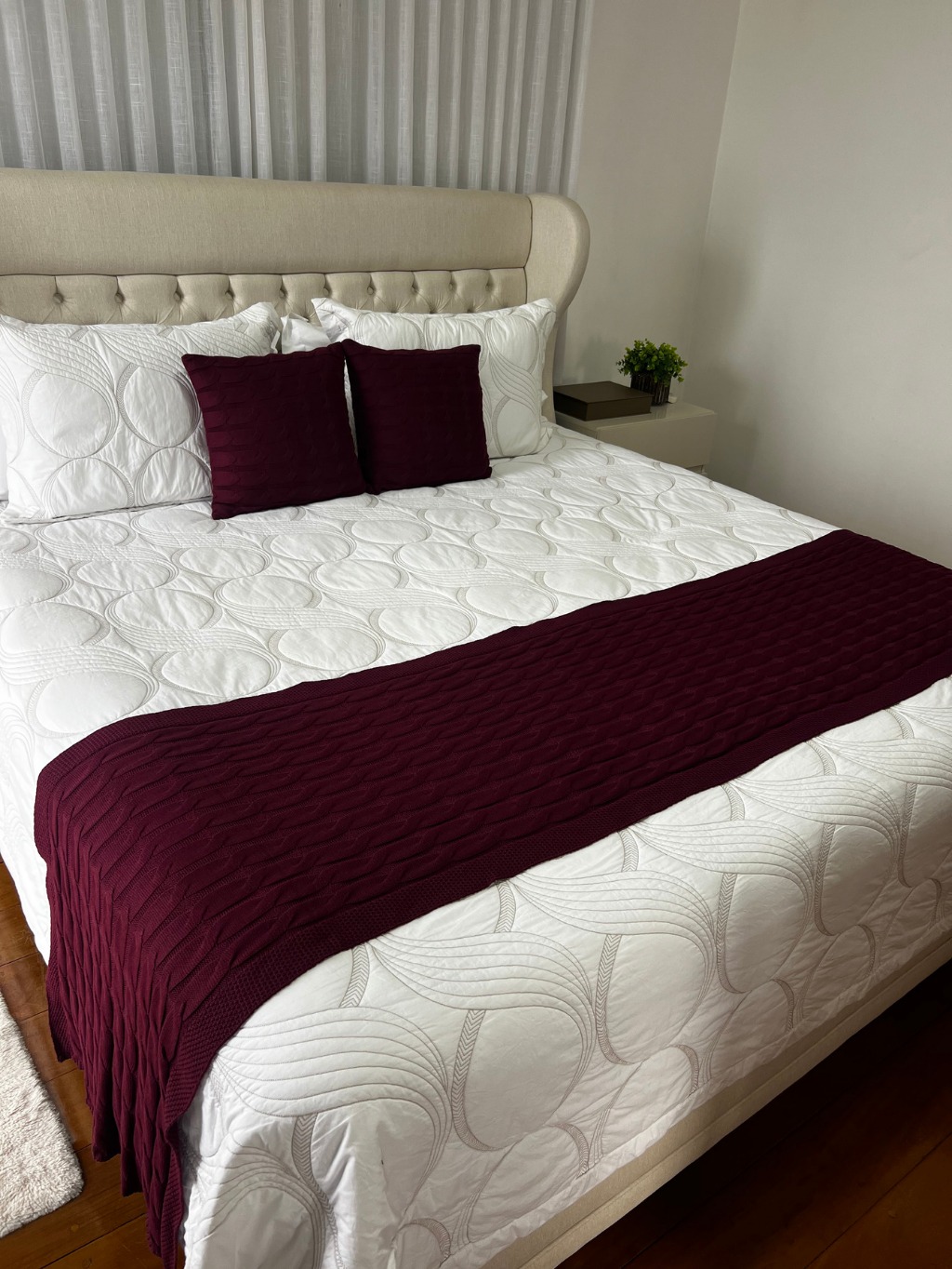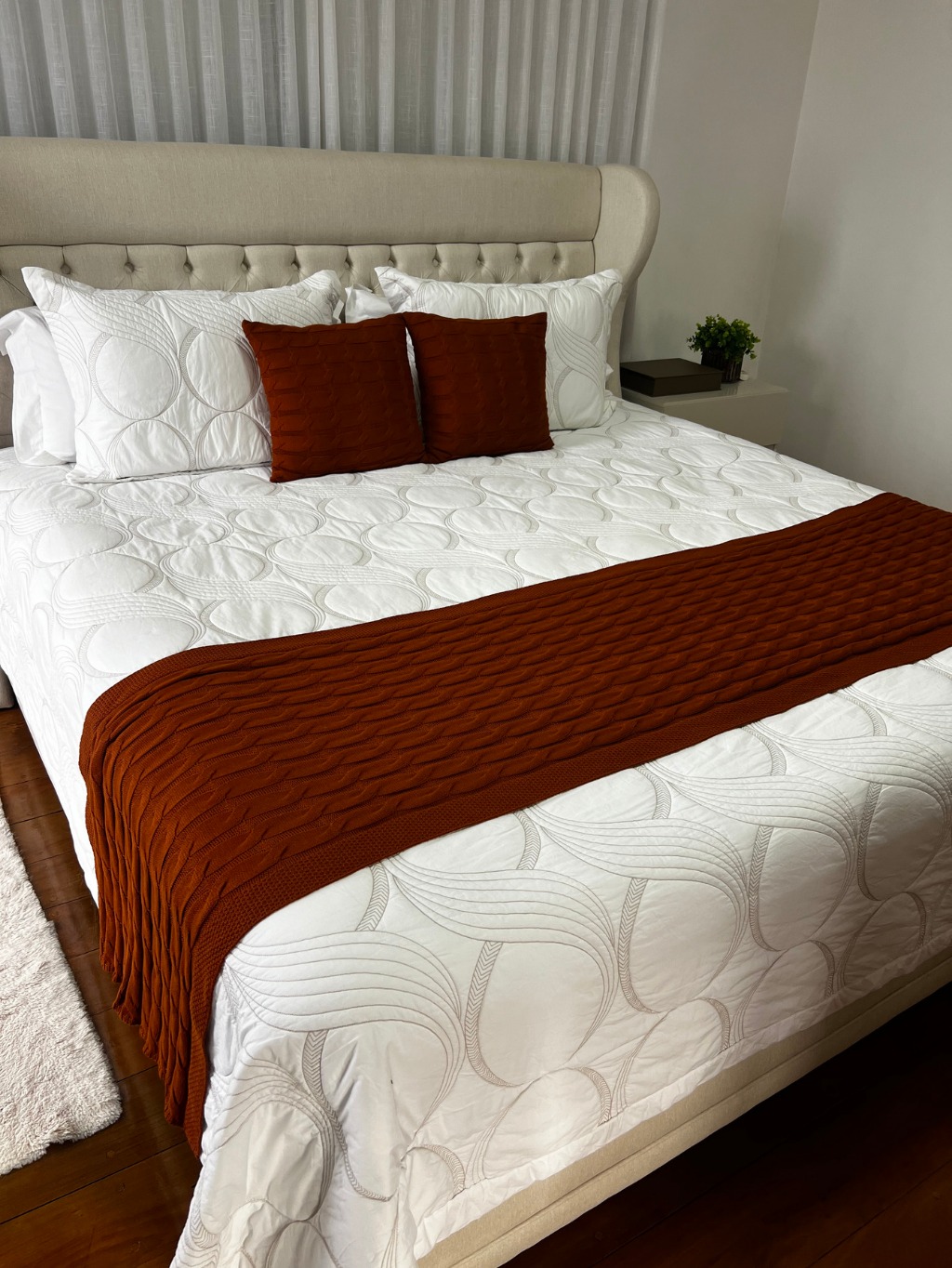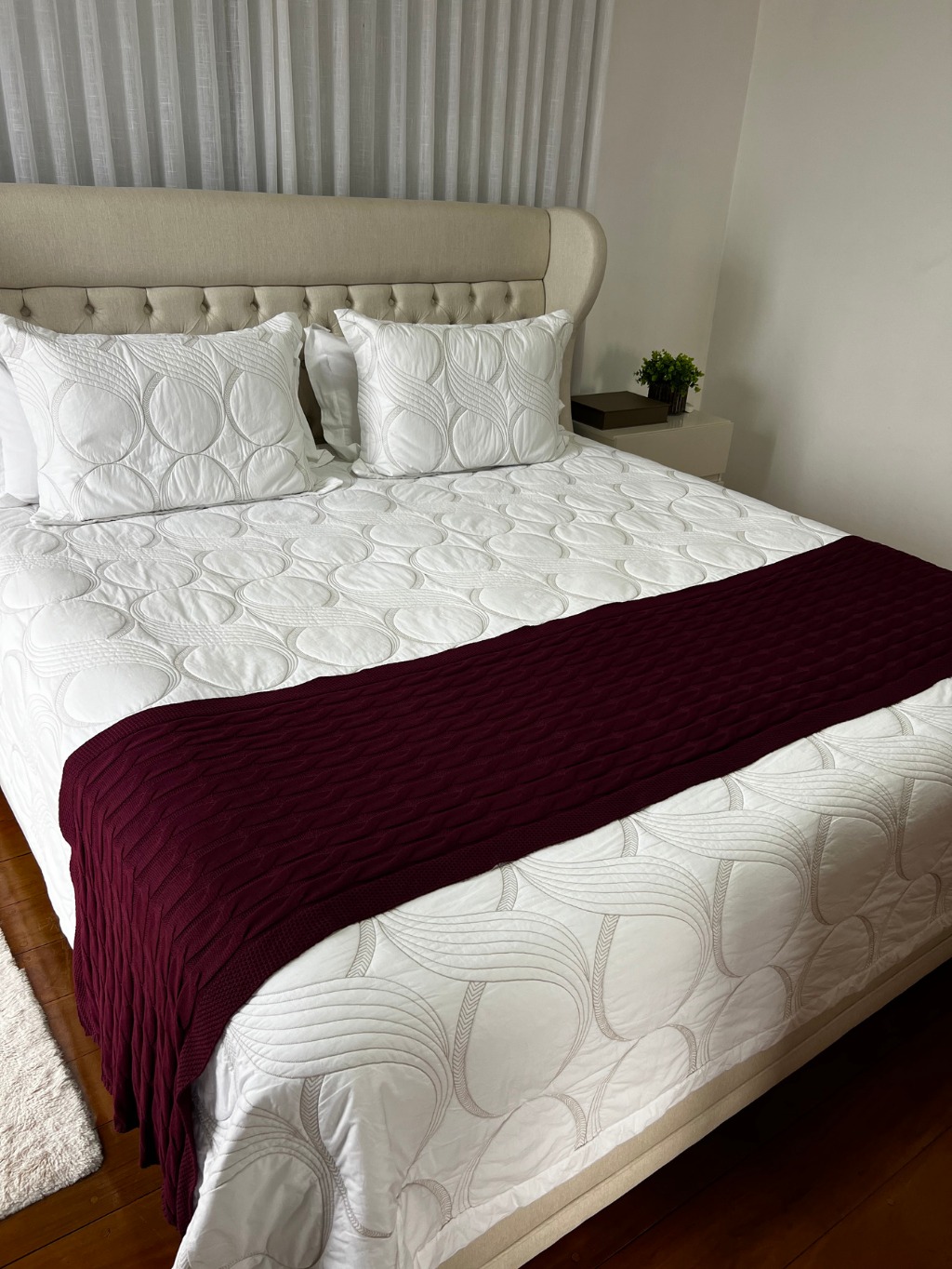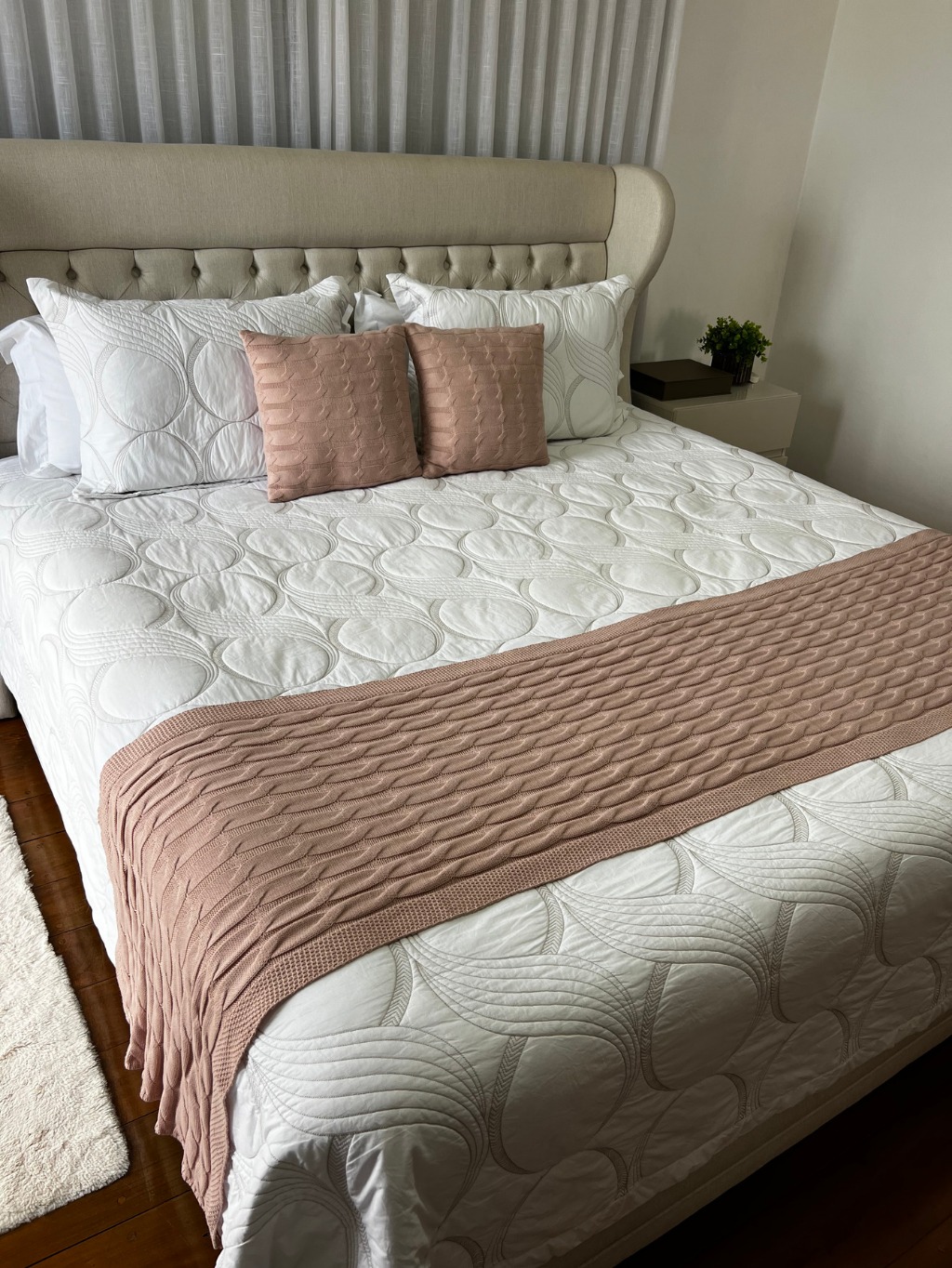 Peseira Manta Trança Sala Cama Queen Sofá Tricot 230x60cm